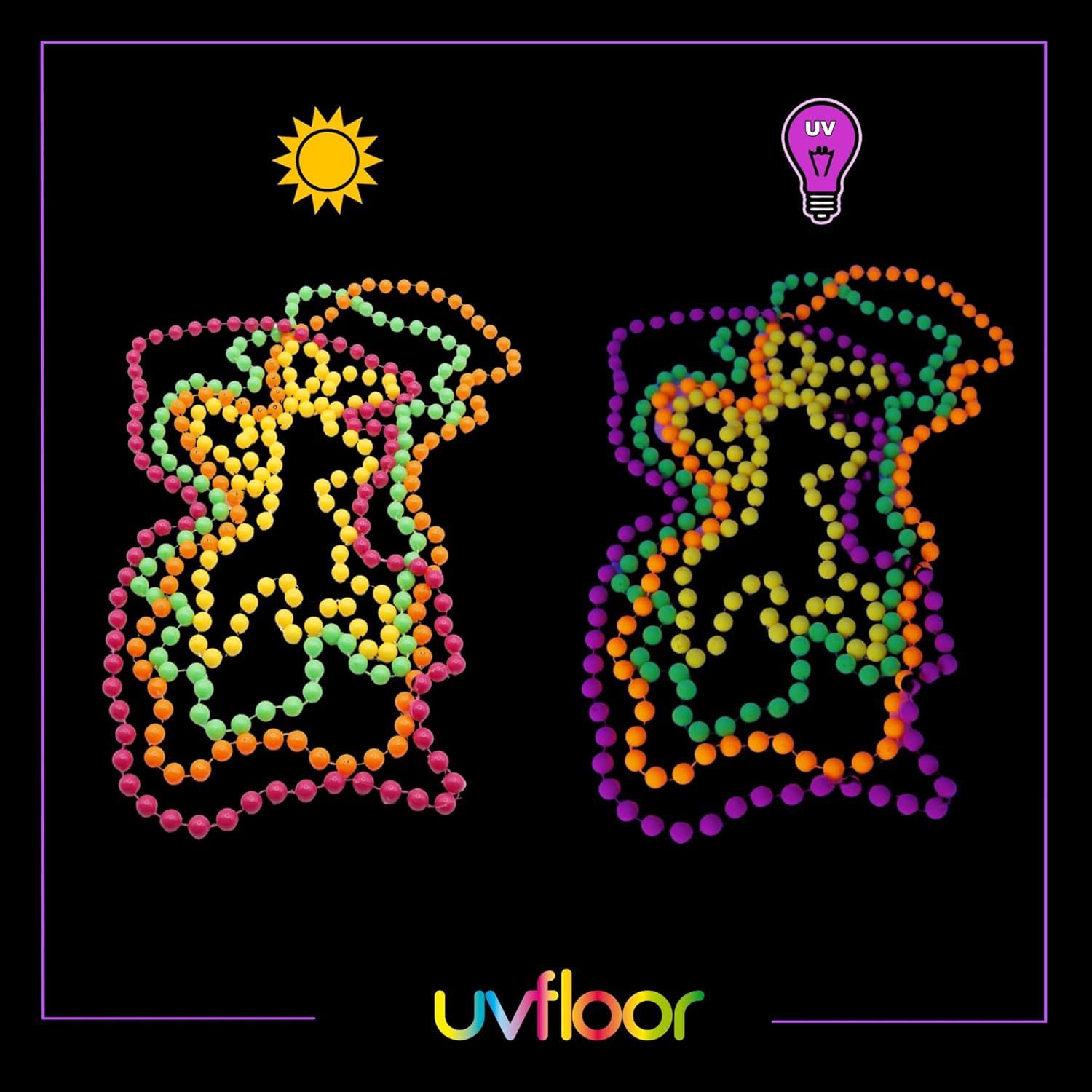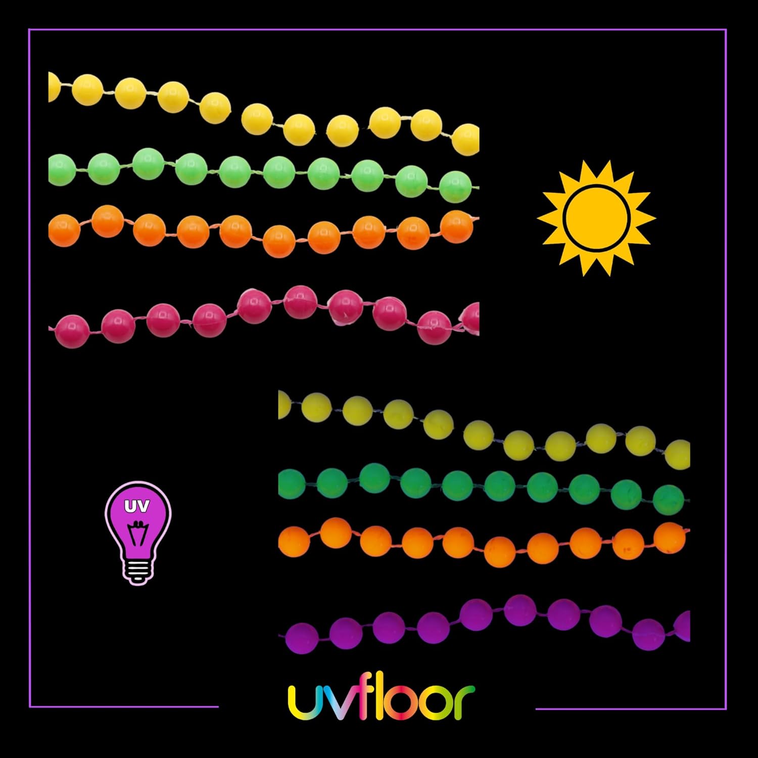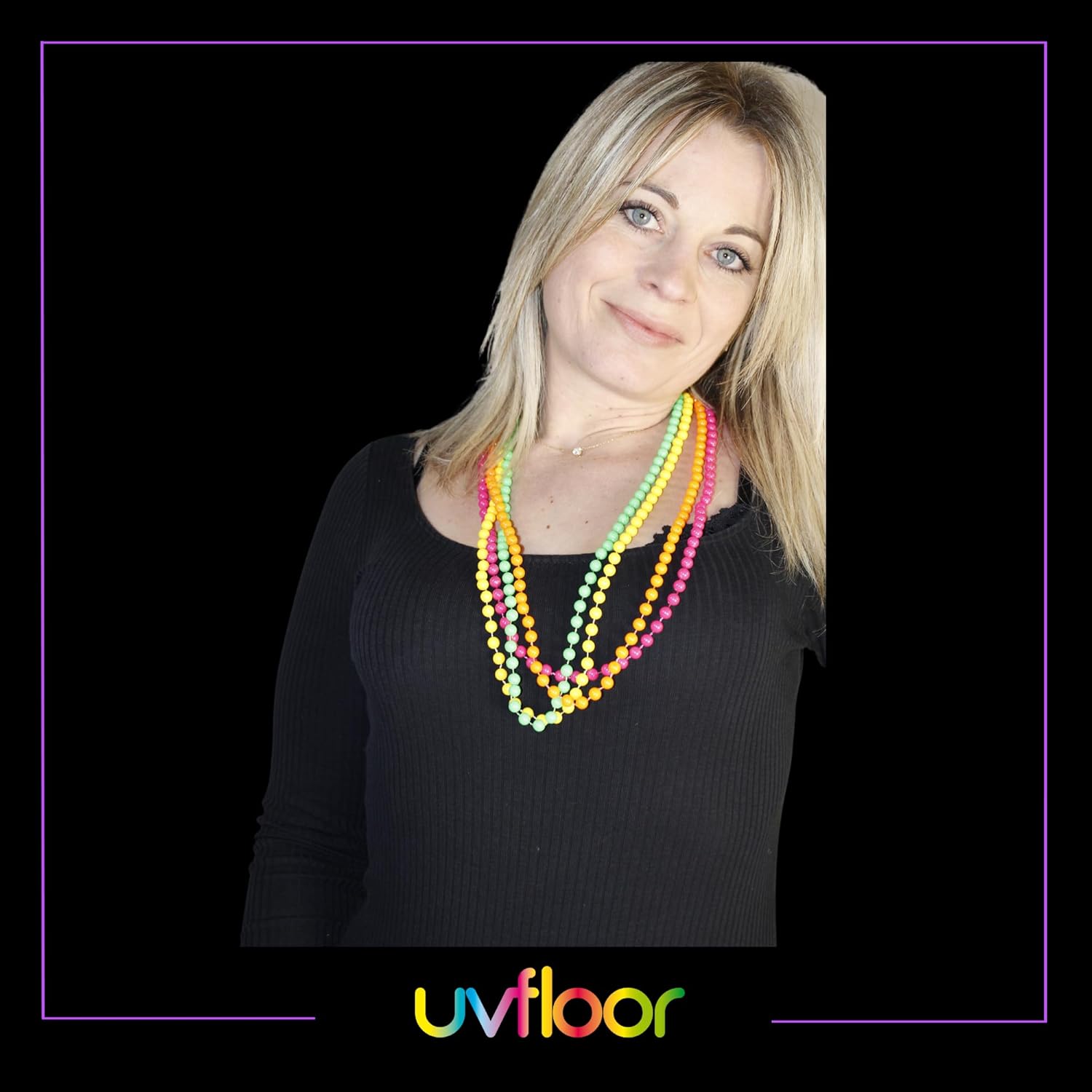 AMBIANCE DISCO: queste collane di perle dai colori appariscenti sono tipiche dello spirito carnevale e travestimento anni '80. Per un'atmosfera di festa decadente e divertente, scegli questo set di 4 collane di perle neon fluorescenti. UN LOOK DA TAGLIARE IL SOFFIO: Queste 4 collane sono perfette per avere un look divertente e moderno. Si indossano molto bene con un piccolo abito fluo o una tunica con motivo etnico, ad esempio ad un festival. COLORI FLASHY: questo articolo è composto da 4 collane di perle di diversi colori neon fluorescenti: rosa, verde, giallo e arancione. Queste tonalità sono ricche e vibranti per farti risaltare in ogni circostanza. ACCESSORIO FLUORESCENT: questi collari fluo sono trattati con un prodotto che li rende fluorescenti. Non brillano di notte, ma reagiscono ai raggi UV. Una volta esposto ai faretti di luce nera, questo set si illumina. L'ESPERTO FRANCESE DEL FLUO: UV Floor offre prodotti premium a prezzi competitivi. Con oltre 10 anni di esperienza nel mondo della notte, abbiamo un catalogo ricco e variegato di accessori fluo per la festa!