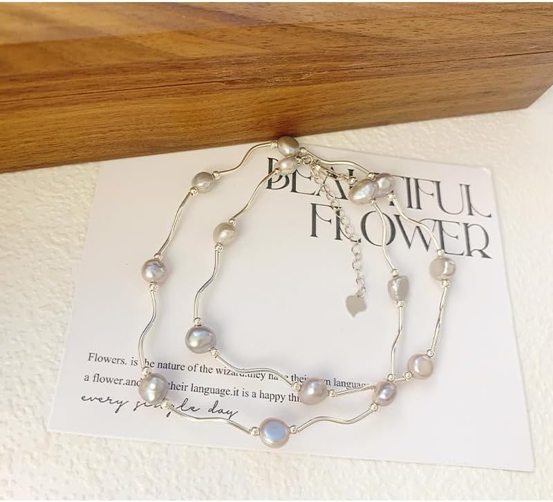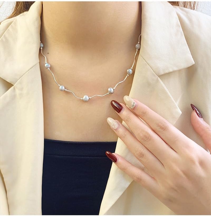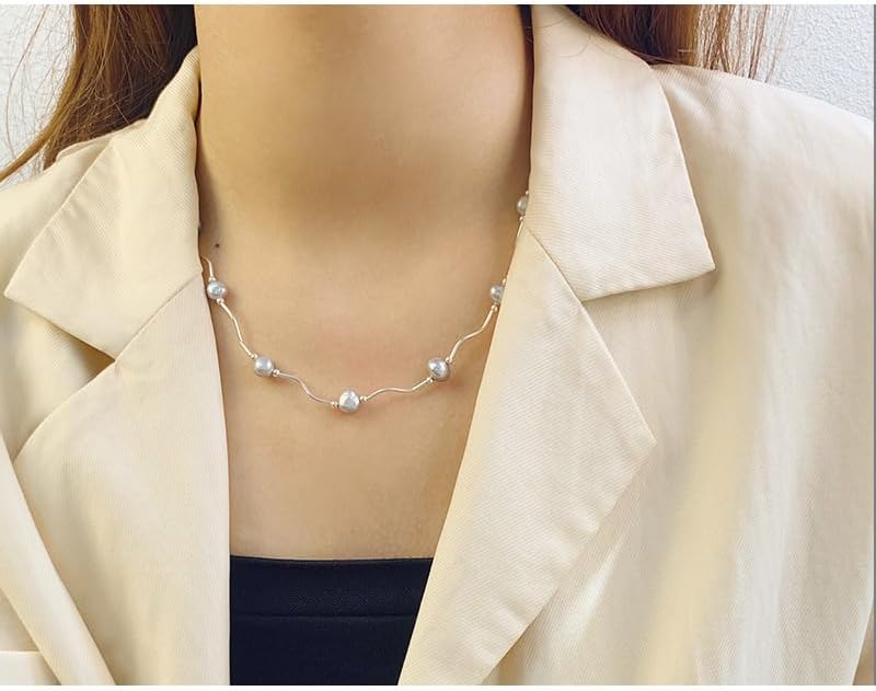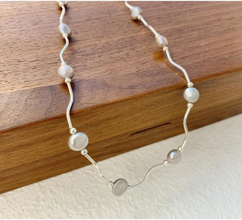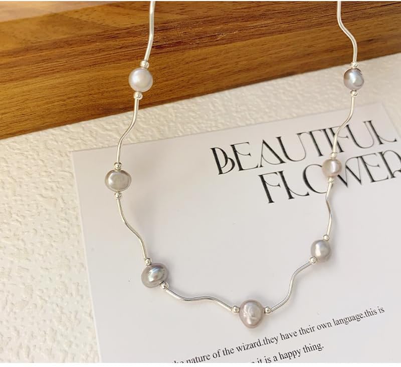 Collana di perle barocche in argento sterling S925 Catena della clavicola di tendenza della personalità femminile Gioielli in argento versatili con temperamento Accessori moda