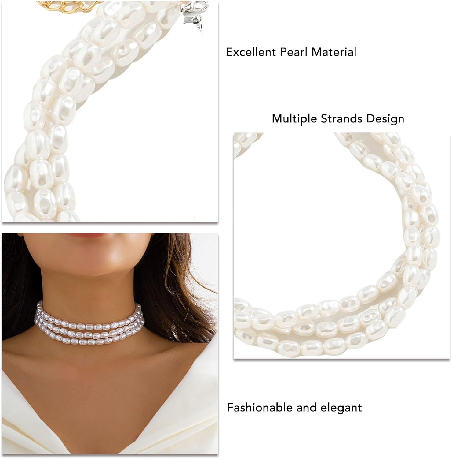 1. Design a più fili: questa collana di moda da donna è progettata con più fili, che è molto alla moda ed elegante e può rifinire la scollatura. 2. Eccellente materiale di perle: questa collana vintage a più fili è realizzata in eccellente materiale di perle, che è alla moda e durevole, non facile da danneggiare. 3. Ottimo per abbinare i vestiti: questa collana di perle è ottima per abbinare i vestiti, puoi abbinarla a qualsiasi vestito, top, maglietta, bretelle, ecc., il che ti rende molto carino e dolce. 4. Design in stile bohémien: questa collana di perle rotonde ha un design in stile bohémien, che può essere un buon modo per rifinire la scollatura e può essere abbinata a diversi stili di abiti. 5. Ampia applicazione: questa collana con colletto di perle ha una vasta gamma di applicazioni, che possono essere utilizzate a casa, feste, bar, banchetti, lavoro e shopping, ecc. Specifiche tecnicheifiche tecniche: Tipo di articolo: collana di perle Materiale: perle Applicazione: donne Stile catena: chiusura con gancio e occhiello Lista Imballaggio: 3 collane di perle o 1 collana di perle