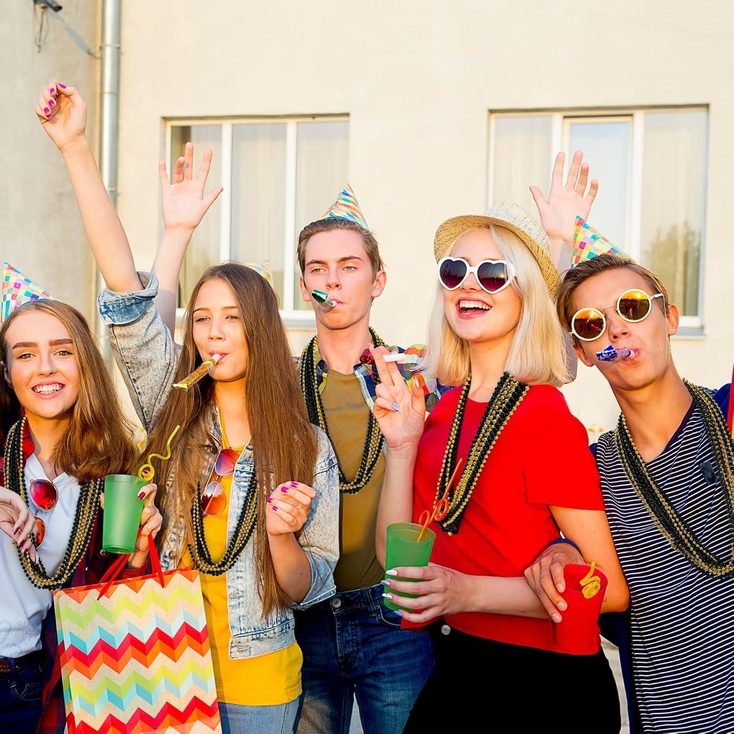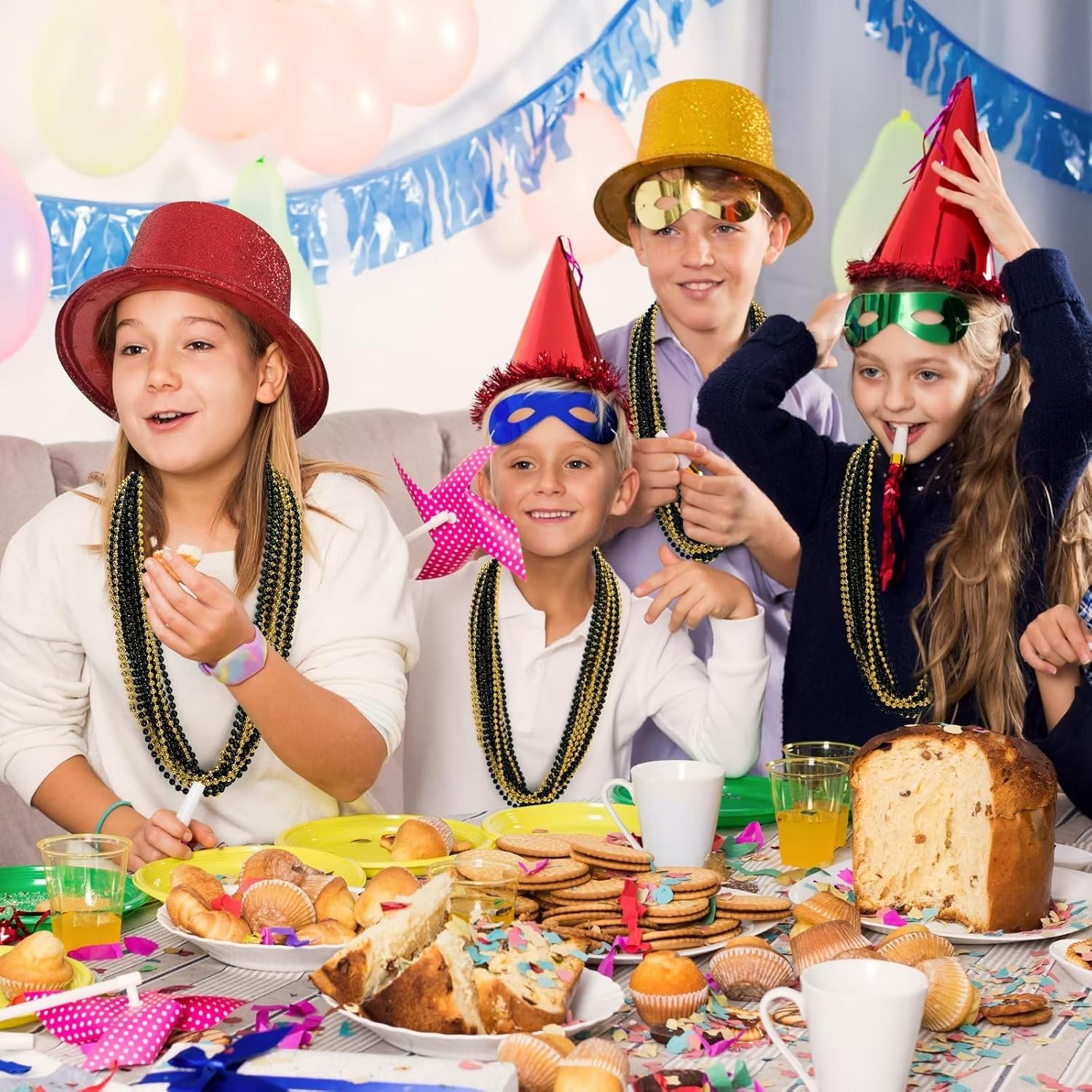 Regali con perline: include 24 collane di perline di Capodanno. Accessori multipli per collane, un set per soddisfare tutte le tue esigenze! QUALITÀ ECCELLENTE - Gli accessori della collana di perle sono realizzati in plastica color metallo, sicuri e durevoli, adatti per un uso a lungo termine. DIMENSIONE UNIVERSALE - Gli accessori della collana di perline misurano 33 pollici, una taglia è adatta per donne e uomini e puoi condividerla con i partner. Design delle perline: le perle di Capodanno sono progettate con colori vivaci. Goditi l'atmosfera di diversi festival. MULTIUSO: Per soddisfare tutte le tue esigenze durante festival, sfilate di Capodanno, feste e celebrazioni per aumentare l'atmosfera del festival.