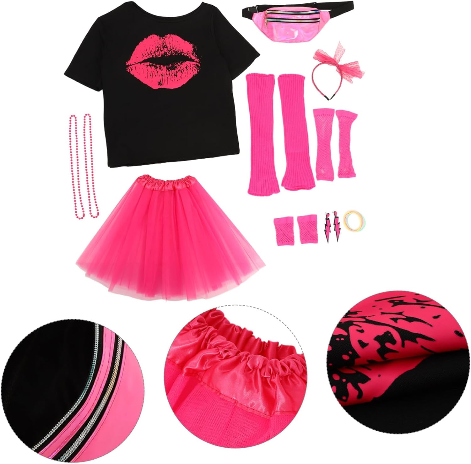 include 1 , 1 gonna, 1 , 1 paio , 1 paio lunghi , 1 paio scaldamuscoli, 2 collane, 1 fascia in , 1 paio , 10 braccialetti. Caratteristiche -Colore: accessori per rosa -Materiale: ABS, PU, metallo, , accessorio per costumi in poliestere - Dimensioni: 61,00X47,50X1,00 cm/23,97X18,67X0,39 pollici accessori per costumi - Adatti all'uso parte e signore, gli accessori per costumi sono ed e presentano costumi in vintage. - costume per anni '80 è leggero, fuori a ballare, retrò, ti ad con la collana retrò. - costume fine per può un'ottima idea per , amiche o colleghe; adoreranno questi accessori per costumi . - Meraviglioso set accessori per fine , per , anni '80 e via, si adattano esigenze accessori per costumi. - Colori , delicati, i costumi anni '80 possono renderti accattivante e aiutarti ad con collane e vintage in . Informazioni sulle accessori per costumi punk in retrò con consistenza confortevole li pratici e popolari come costumi per o cosplay. Questi accessori per costumi retrò anni '80 sono squisita per un utilizzo sicuro e duraturo