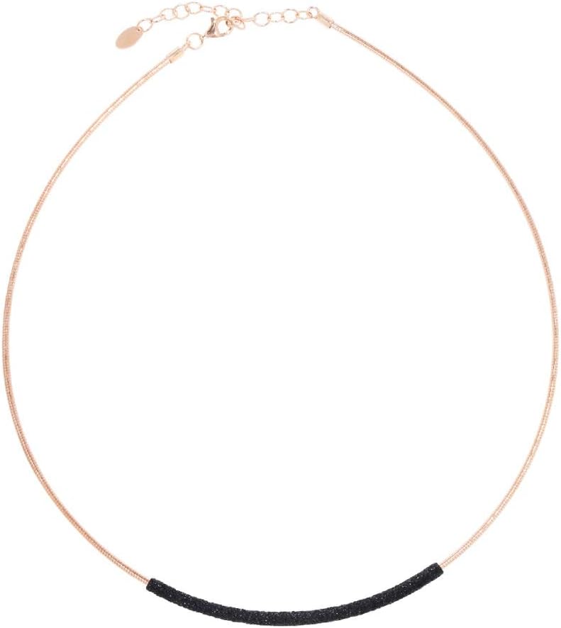 Collana Polvere di Sogni in argento sterling 925 placcato in oro rosa. Esclusivo gioiello in argento della marca premium PESAVENTO incastonato con materiali raffinati e un tocco italiano per il design. In argento sterling 925 placcato in oro rosa, la forma circolare della collana Polvere di Sogni illumina il collo. Il metallo prezioso è stato disegnato a forma di una delicata catena serpentina, un elemento decorativo nero scintillante completa il design chiaro e espressivo. Questo crea un emozionante gioco di riflessi scintillanti, dalla lucentezza oro rosa fino al glamour misticamente scuro. L'inconfondibile scritta del designer duos Marino Pesavento e Chiara Carli combina influssi contemporanei con un volto per una maggiore eleganza. Entrambe individuano tendenze innovative e sviluppano tecniche innovative nella progettazione dei gioielli. La collezione Polvere di Sogni, la polvere dei sogni, crea il suo glamour moderno e sobrio in polvere smaltata con una tecnica particolare sui gioielli in argento. Il risultato è una brillantezza inconfondibile, che attira su di sé ogni sguardo. La collana Polvere di Sogni è stata realizzata secondo i più elevati standard di qualità in Italia e vi offre una leggerezza moderna e materiali pregiati a lungo e sempre brillante. Per completare il tuo look, combinate la collana Polvere di Sogni in argento sterling 925 placcato in oro rosa di PESAVENTO con un anello abbinato dal nostro vasto assortimento! Volete regalare la collana Polvere di Sogni in argento sterling 925 placcato in oro rosa di PESAVENTO Allora utilizzate il nostro servizio regalo, che vi confezionerà il gioiello come presente, scegliete la scelta giusta durante l'ordine.