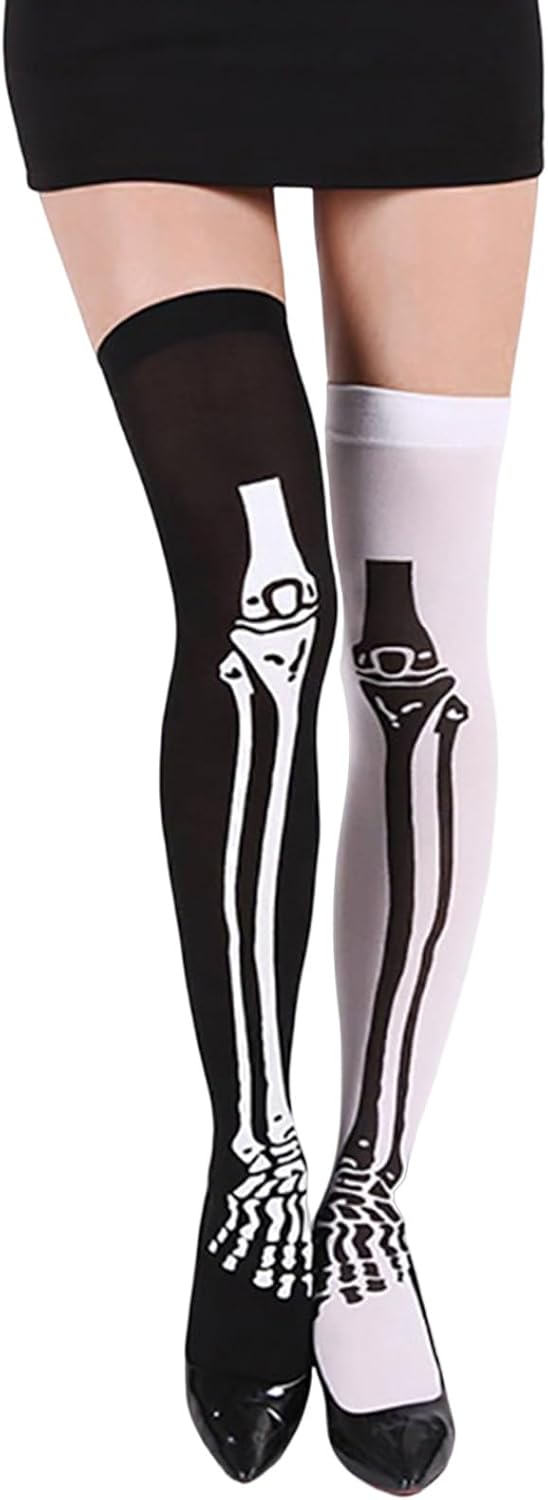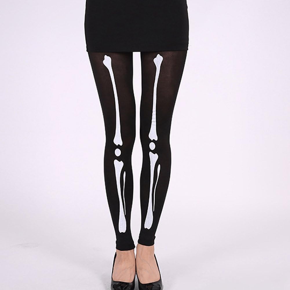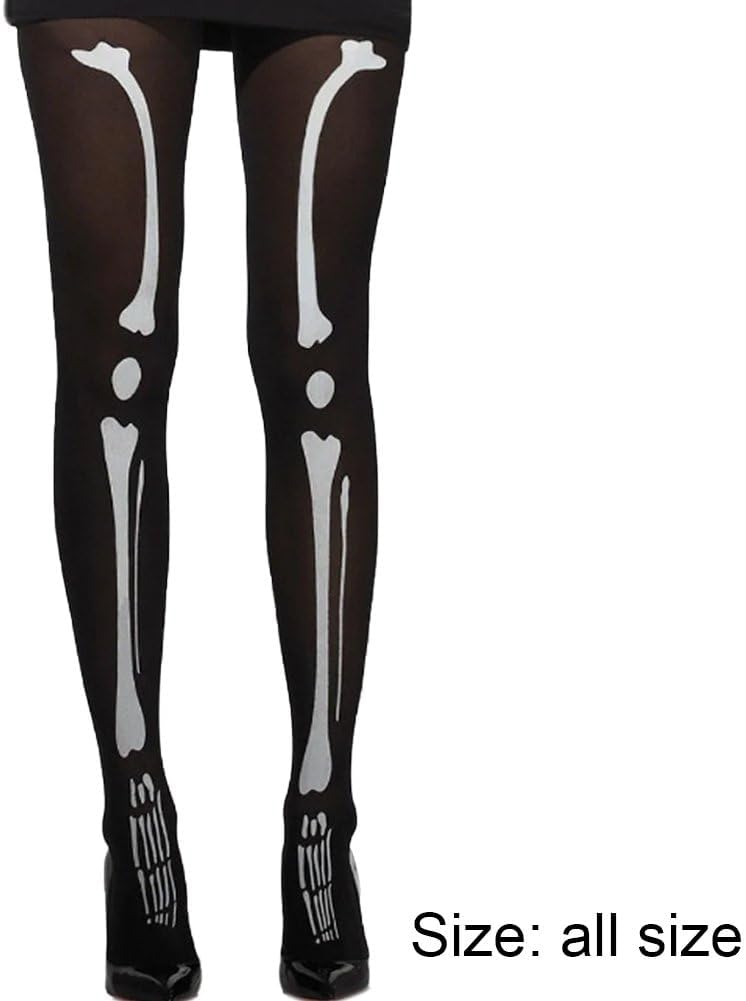 Bellissimo accessorio abbinare tuoi vestiti, gonne, pantaloncini, tacchi alti, puoi indossare questi collant con stampa a scheletro per andare a feste, discoteche o festival. I collant di Halloween sono realizzati in fibre acriliche, piacevoli tatto e comodi indossare. Multiuso: può essere utilizzato per calze, pigiami, costumi per cosplay di Halloween, uniformi tentatrici. Le nostre calze sono molto eleganti e belle, donano alle tue gambe un aspetto snello e affascinante e sono apprezzate donne e ragazze.
