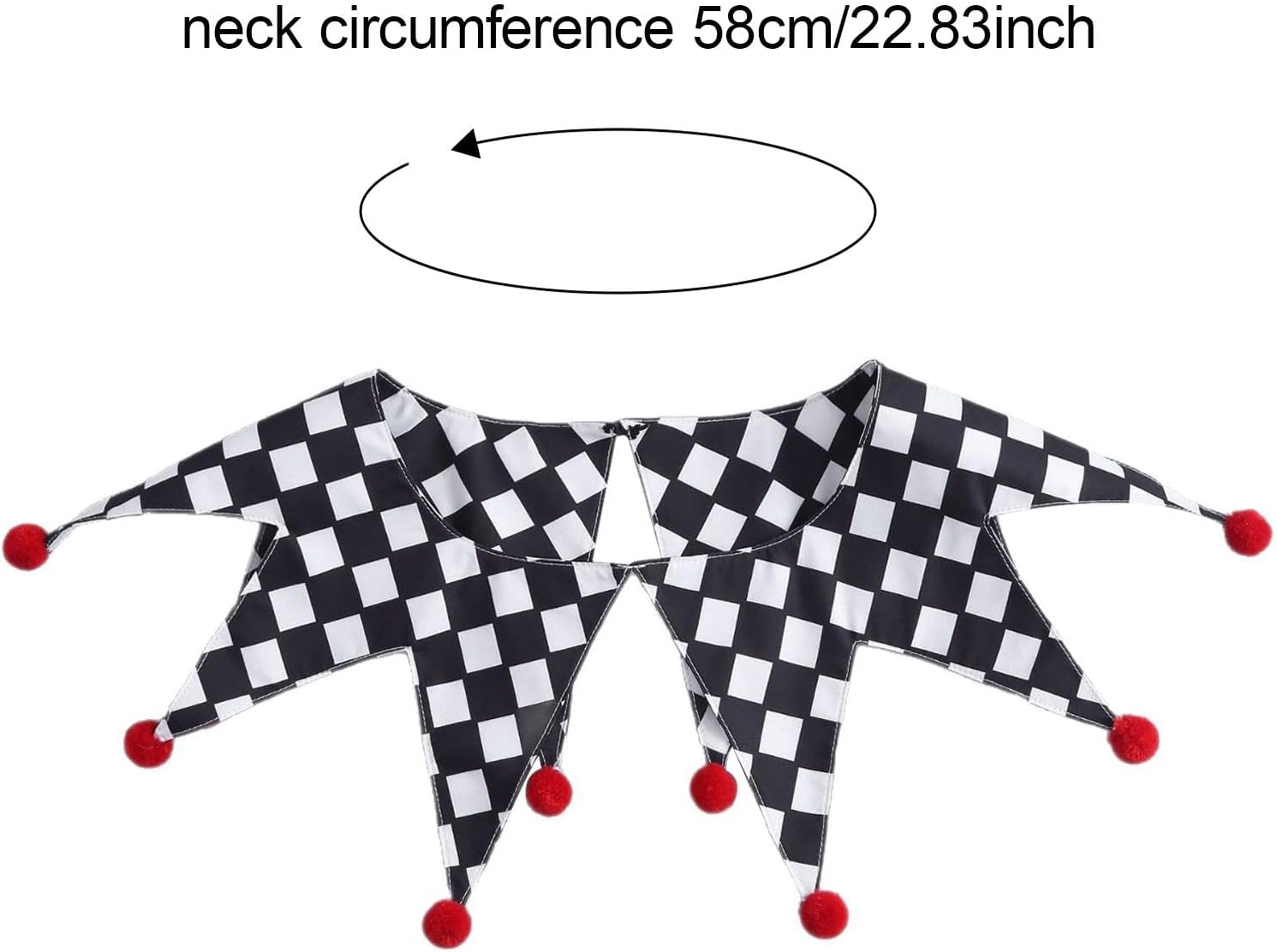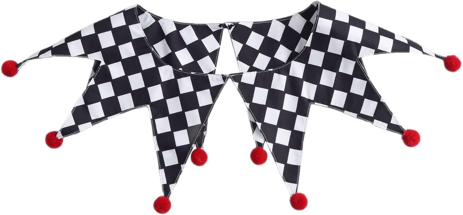 【Taglia】: Progettato con una nferenza del collo di 58 cm/22,83 pollici, questo collare da clown da offre una vestibilità aderente ma comoda per la maggior parte degli indossatori 【Accessori per costumi da giullare】: questo colletto da clown è un accessorio sia per uomini che per donne, ottimo per Halloween, cosplay, spettacoli circensi e feste a tema, 【Materiale】: i collari da clown di Halloween sono realizzati in poliestere, offrendo comfort e traspirabilità per un uso prolungato durante eventi o spettacoli 【Pacchetto】: Riceverai 1 collare da clown di Halloween 【Facile da indossare】: i collari da clown sono facili da indossare e da togliere, progettati per vestirsi velocemente in modo da poter essere pronti in pochi secondi, rendendolo comodo