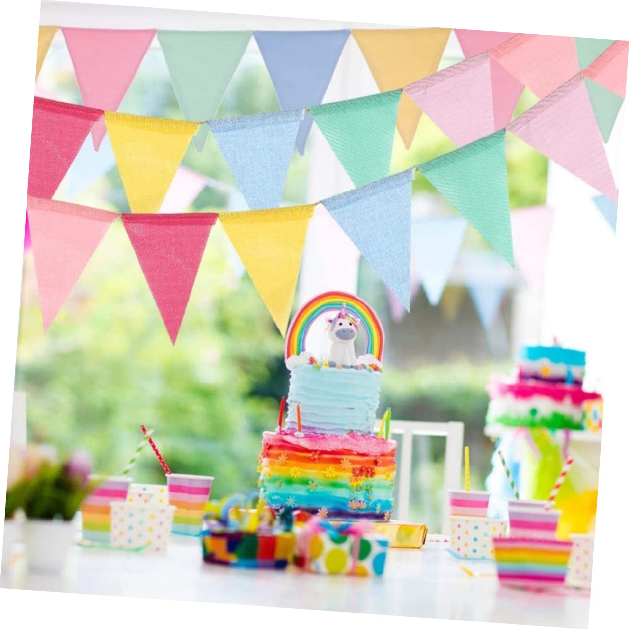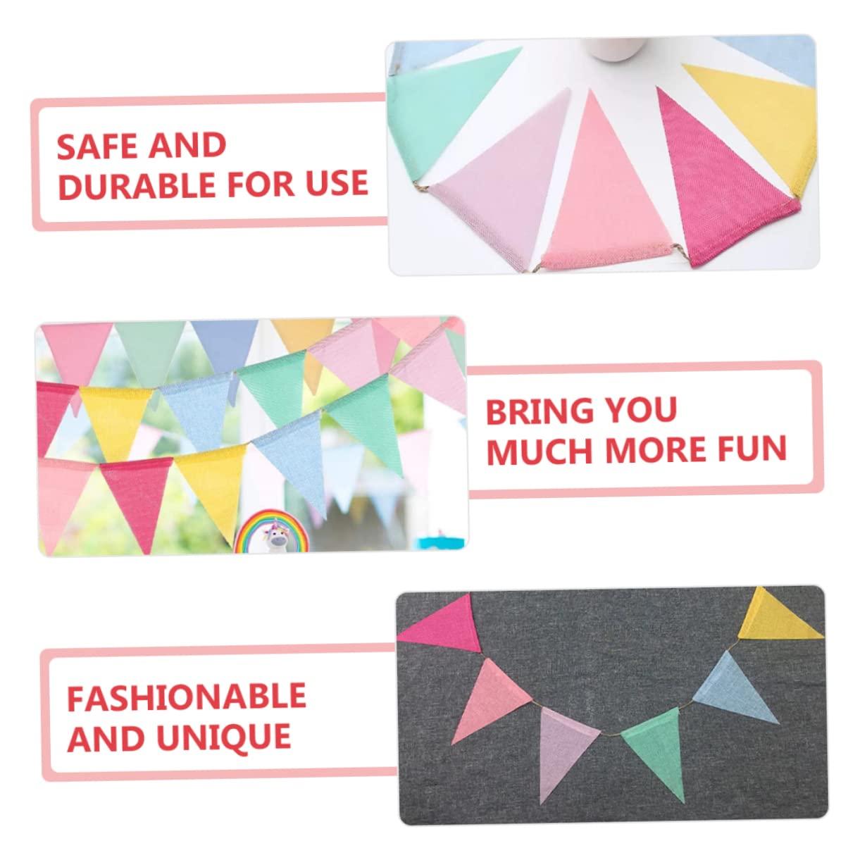 Ghirlanda di bandiere triangolari: puoi usarla per addio nubilato, matrimoni, docce, feste di compleanno, feste di capodanno o qualsiasi festa, decorazioni di laurea. Banner di benvenuto: può anche essere utilizzato come sfondo fotografico per decorazioni o scattare foto, decorazioni di carnevale. Decorazioni per feste arcobaleno: sembrano molto , adatte a casa, scuole, uffici, giardino, ecc., ti offrono molto più divertimento e decorazioni per esterni. Bandiere per esterni: decorazione con bandiera triangolare appesa, adatta a qualsiasi luogo tu voglia, per un'esperienza d'uso piacevole, ghirlanda. Decorazioni per presepi: adatte per scattare foto, compleanni di bambini, scene di matrimoni, camerette, aule, , ecc., striscioni per feste di compleanno.