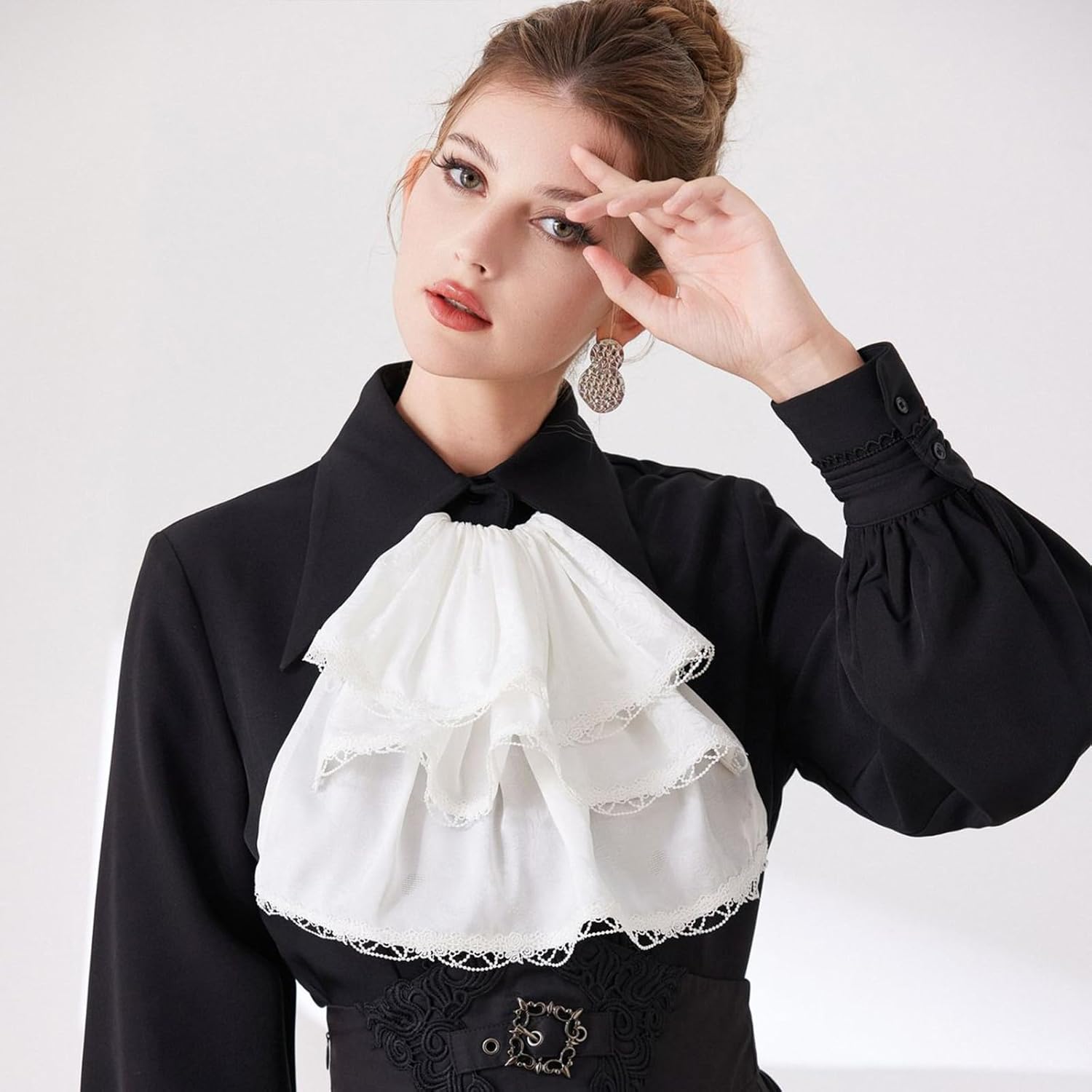 Colletto Jabot legato vittoriano con lacci per serate di gala e costume Caratteristiche: Migliora il tuo outfit formale con questo elegante colletto decorativo, caratterizzato da un design senza tempo e con lacci, utilizza poliestere traspirante per un comfort tutto il giorno. Il girocollo vanta un auto-legato regolabile per una rapida vestibilità, eliminando legature complesse mantenendo un look lucido per occasioni professionali o festival. Trasforma senza problemi da riunioni in ufficio a feste in giardino, cene di anniversario a cerimonie di laurea, con questo accessorio versatile che aggiunge istantaneamente raffinatezza a qualsiasi ensemble. Perfetto per professionisti della moda, partecipanti a matrimoni e donne alla ricerca di accessori sofisticati che completano sia l'abito da lavoro che l'abbigliamento casual. La struttura in poliestere lavabile in lavatrice garantisce una conservazione duratura della forma e una facile manutenzione, rendendo il collare ideale per i viaggiatori frequenti che necessitano di eleganti accessori formali. Specifiche tecniche: Componente: tessuto Dimensioni del prodotto: ca. Lunghezza cravatta: 122 cm, lunghezza: 26 cm. La confezione include: 1 collare decorativo. Nota: Considerare un margine di errore di 0-1 cm a causa della misurazione manuale. A causa delle differenze tra i diversi monitor, l'immagine potrebbe non rispecchiare il colore reale dell'articolo.
