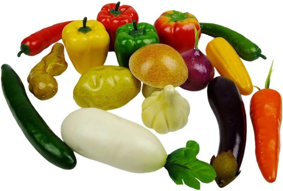 [SIMULAZIONE REALISTICA] Questo set di verdure artificiali da 17 pezzi presenta oggetti meticolosamente realizzati che imitano da vicino l'aspetto e la consistenza dei prodotti reali, rendendolo un'eccellente opzione decorativa per qualsiasi casa. [VARIETÀ DIVERSA] Il set include 13 tipi unici di verdure come zucche, peperoni e patate, offrendo un ricco assortimento che esalta vari temi e ambientazioni decorative. Dimensioni perfette: progettati per essere più piccoli delle verdure reali, questi pezzi decorativi si adattano perfettamente a cucine o sale da pranzo senza travolgere lo spazio, aggiungendo fascino ai tuoi display. Decorazione per tutte le occasioni: queste verdure realistiche sono adatte per migliorare decorazioni per feste, allestimenti per le vacanze o servire come deliziosi ausili visivi in ambienti educativi. Accento accattivante per la casa: con colori vivaci e dettagli realistici, queste verdure artificiali fungono da accenti accattivanti in qualsiasi spazio abitativo, portando un tocco di freschezza e calore al tuo arredamento.