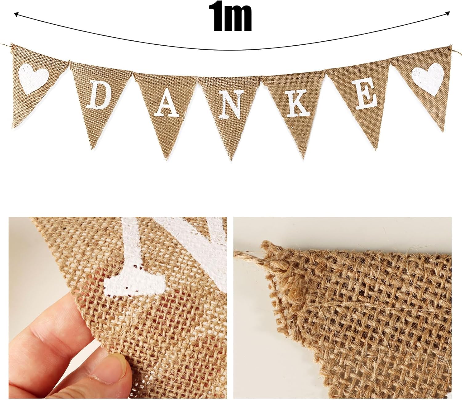 Contenuto della confezione: 1 ghirlanda di ringraziamento in stile boho. Materiale: iuta. Dimensioni: 3 metri di lunghezza. Si prega di guardare gli altri dettagli nella foto. Facile da usare: questo banner è già assemblato, puoi appenderlo facilmente nei posti che desideri. Bellissima decorazione per pareti, porte, giardini o finestre. Decorazione nuziale: ideale come decorazione per matrimoni, addii al nubilato, addio al nubilato o feste di addio per colleghi, insegnanti, educatori. Le nostre bandierine possono essere utilizzate non solo per la decorazione di interni, ma anche per decorazioni di esterni, spiaggia, prato e lago. Non devi preoccuparti se la ghirlanda è sporca, la iuta è facile da pulire. È un ottimo supporto fotografico, non importa dove si trovi. Cattura bellissimi ricordi di te e dei tuoi amici.