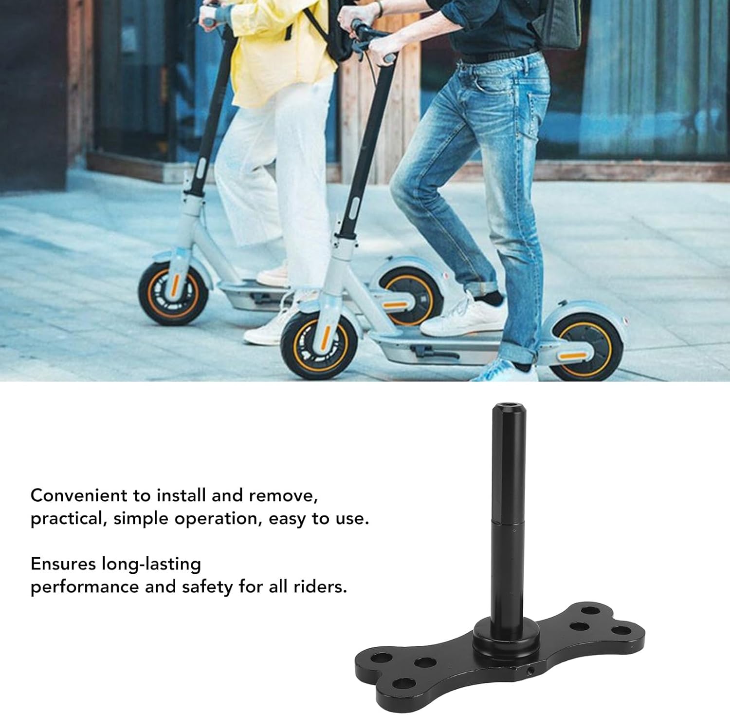 [Doppi ammortizzatori] Fornisce un'esperienza di guida più fluida con sospensioni migliorate. [Installazione e rimozione facili] Funzionamento comodo e intuitivo per praticità e comodità. [Compatibile per scooter] Specificamente progettato per un'esperienza di guida ottimale. [Materiale in acciaio inossidabile] Impermeabile, robusto e durevole per sicurezza e tranquillità. [Guida fluida e stabile] Assorbe gli urti e le vibrazioni per il massimo comfort su vari terreni.