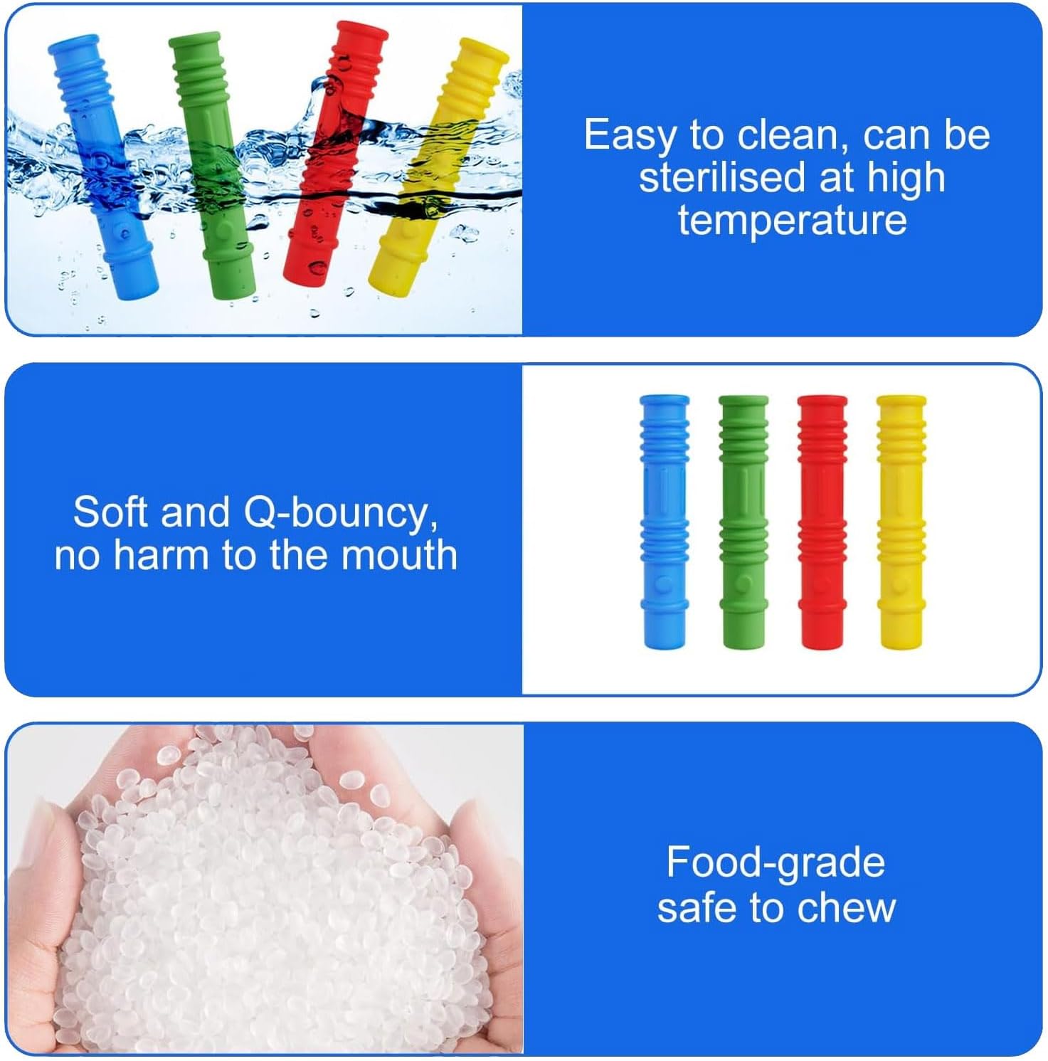 La custodia in silicone per matite tubolari rafforza la messa a fuoco e la calma. Speciale per la stimolazione sensoriale e il sollievo dallo stress durante le attività di scrittura o disegno Con una superficie colorata e consistenza adatta ai bambini, queste custodie per matite resistenti ai morsi forniscono un ingresso sensoriale sicuro per i bambini, proteggendo la punta della penna da eventuali danni Adatto per tre bambini, bambini piccoli, bambini in età prescolare, individui o per alleviare lo stress che richiede un'elaborazione sensoriale Combina funzionalità attraverso un supporto di scrittura ergonomico e un design portatile per favorire l'espressione creativa scoraggiando il comportamento distruttivo del morso Ampiamente usato nell'apprendimento in classe, nell'educazione domestica o nell'ambiente di lavoro in ufficio dove il sollievo dallo stress e dalla concentrazione sono essenziali