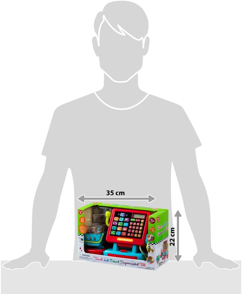 Registratore di cassa touchscreen PlayGo Dimensioni: 31 x 14,5 x 22 cm Accessori: carta bancaria, denaro, cestino con oggetti, scanner e microfono Lo schermo del registratore di cassa è di tipo tablet con icone e pulsanti numerici; il nastro trasportatore si muove manualmente Giocattolo educativo che incoraggia le abilità sociali, la creatività e l'immaginazione dei bambini