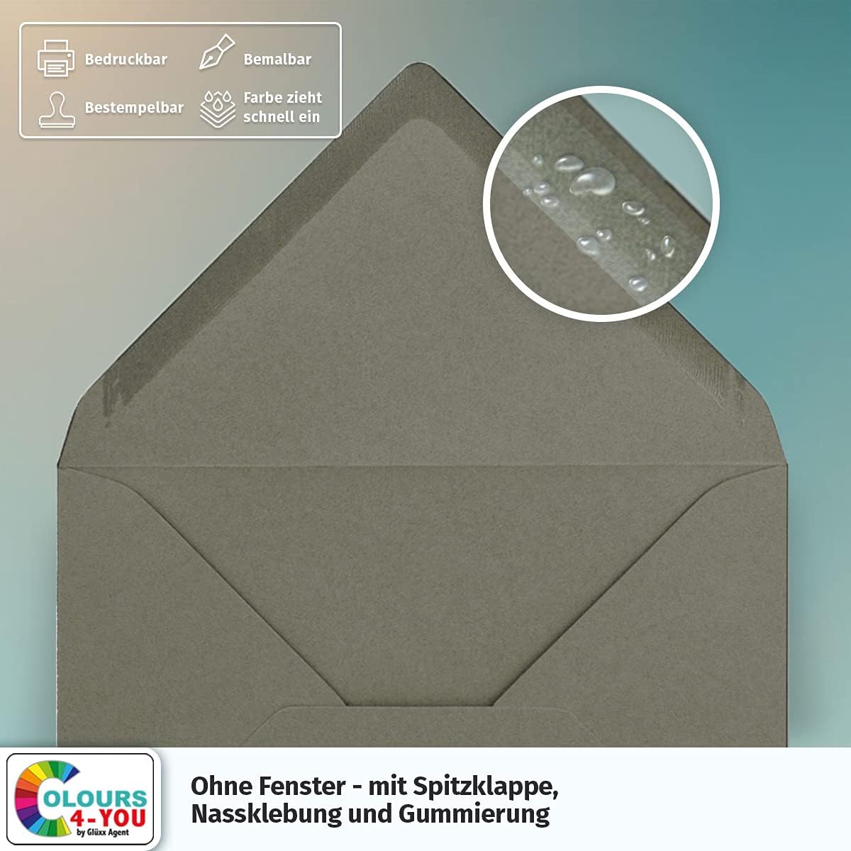 Formato: DIN C6 – 114 x 162 mm (11,4 x 16,2 cm) – con incollaggio a umido e gommatura, senza finestra Colore e grammatura: antracite – 120 g/m² Al tatto: piacevole al tatto con una superficie opaca, bella profondità di colore Ideale per le occasioni: matrimoni, lettere standard, Natale, lutto, lettere d'amore, inviti, compleanni, nascite e bricolage (fai da te) CONTENUTO: 500 buste della serie - COLOURS-4-YOU