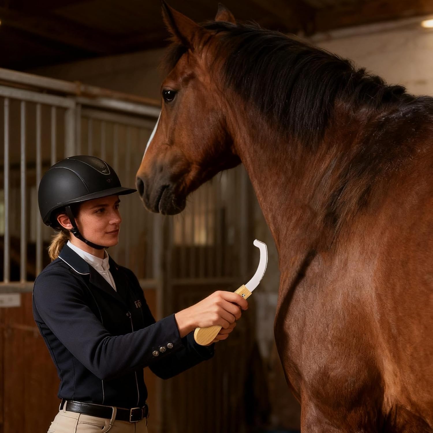 Einfache Pferdepflege: Mit einer gebogenen Form ausgestattet bietet der Dasselfliegen-Eier-Entferner eine effiziente Reinigungsleistung, die hartnäckigen Schmutz schnell entfernt und den Prozess der Fellpflege vereinfacht. So bleibt das Fell Ihres Pferdes während der Pflegesitzungen in optimalem Zustand. Die gebogene Form macht die Pferdepflege einfacher und effizienter, indem sie eine schnelle und gründliche Reinigung ermöglicht. Dies trägt dazu bei, dass das Pferdefell gesund und sauber bleibt Stabile Komponenten: Der Bremseneier-Entferner ist mit stabilen Komponenten und abrasionsfesten Eigenschaften ausgestattet, die eine konsistente Funktionalität für anspruchsvolle Reinigungsarbeiten in schwierigen Umgebungen wie Höfen oder Ställen bieten. Dies steigert den Benutzerkomfort durch zuverlässigen Einsatz auch bei rauen Bedingungen. Die robuste Materialauswahl gewährleistet Widerstandsfähigkeit gegen Abnutzung und macht den Bremseneier-Entferner ideal für regelmäßige Aufgaben in der Ti Kompakt und praktisch: Mit seiner portablen und kompakten Bauweise bietet der Bot-Eier-Entferner für eine praktische Lösung für einfache Aufbewahrung und Transport. Dies optimiert den Prozess der Gesunderhaltung und Hygiene des Pferdes, was die overall Pferdepflege effizienter gestaltet. So können Sie die Gesundheit Ihres Pferdes mit Leichtigkeit aufrechterhalten, ob im Stall oder unterwegs. Verbesserter Griff und Komfort: Der Bot-Fliegen-Eier-Entferner für verfügt über eine rutschfeste Textur und eine optimierte Griffkurve für einen effektiven Halt, der auch unter anspruchsvollen Bedingungen eine sichere Handhabung gewährleistet. Diese Eigenschaften ermöglichen eine komfortable und sichere Entfernung von Bot-Fliegen-Eiern von Tieren oder Oberflächen, wobei die rutschfeste Oberfläche und die ergonomische Form zusätzlichen Komfort bieten und die Benutzerkontrolle in verschiede Vielseitige Einsatzmöglichkeiten: Der Dasselflarven-Entferner für überzeugt mit einem praktischen Design und unterstützt zuverlässig das Fliegenmanagement während des Outdoor-Reitens. Die weit verbreitete Anwendung unterstreicht den hohen Nutzwert und trägt zu reibungsloseren Abläufen bei reiterlichen Inspektionsaktivitäten in verschiedenen Umgebungen bei. Dieses Produkt ist ein unverzichtbarer Begleiter für alle Reitaktivitäten und fördert die Effizienz im täglichen Umgang mit Pferden.