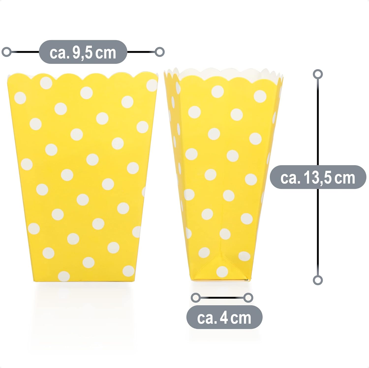 PORZIONE PICCOLA: perfetta per i piccoli amanti dei popcorn. Ideale per chi non ha tanta fame, un accessorio indispensabile per ogni festa! SOSTENIBILE: questi sacchetti di carta sono sicuri per gli alimenti e biodegradabili. Un'alternativa intelligente ai tradizionali sacchetti di plastica! VERSATILI: Che siano per i dolci, come cestino pasquale o per la barretta di cioccolato, i piccoli sacchetti di carta sono ideali per ogni occasione! PRATICO: I sacchetti sono realizzati in carta rinforzata e fanno sembrare di qualità superiore ogni regalo per parenti, amici e colleghi! AMBITO DI CONSEGNA: 16 sacchetti di popcorn // Materiale: carta rinforzata // Dimensioni: ca. 13,5 x 9,5 x 4 cm (lunghezza x larghezza x profondità) // Colore: giallo, blu, viola con punti bianchi (la selezione varia e dipende dallo stock)