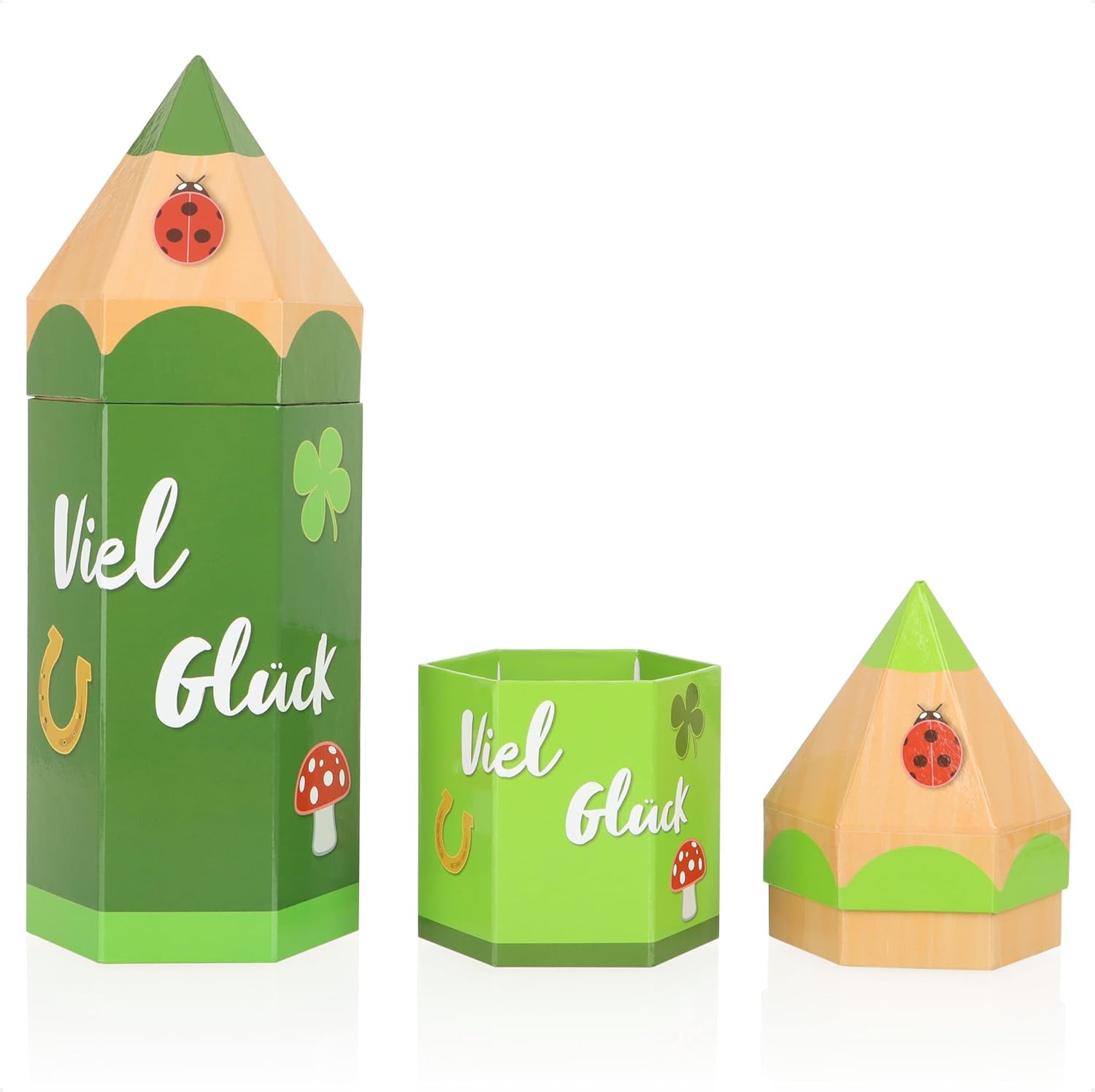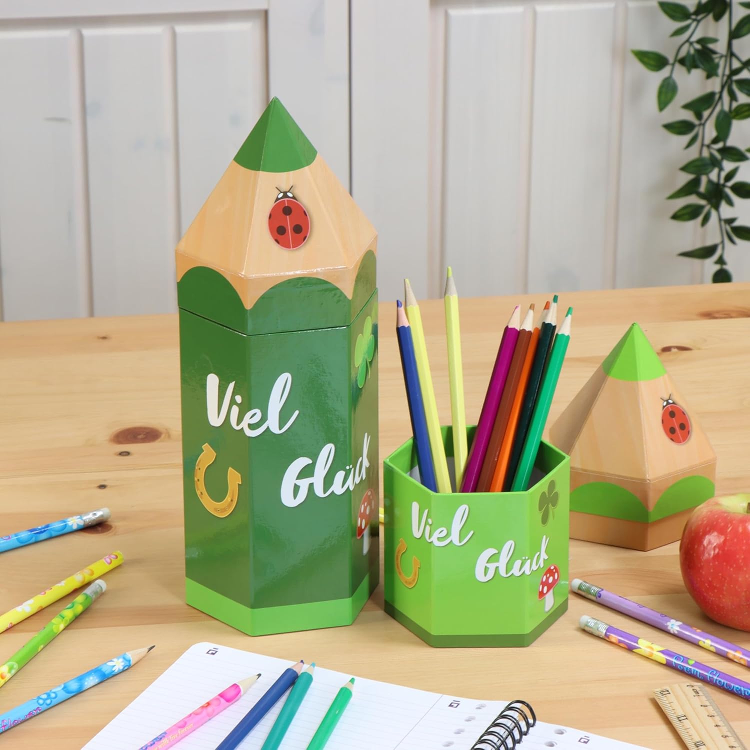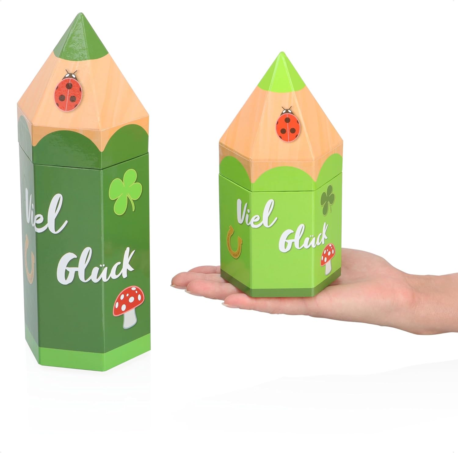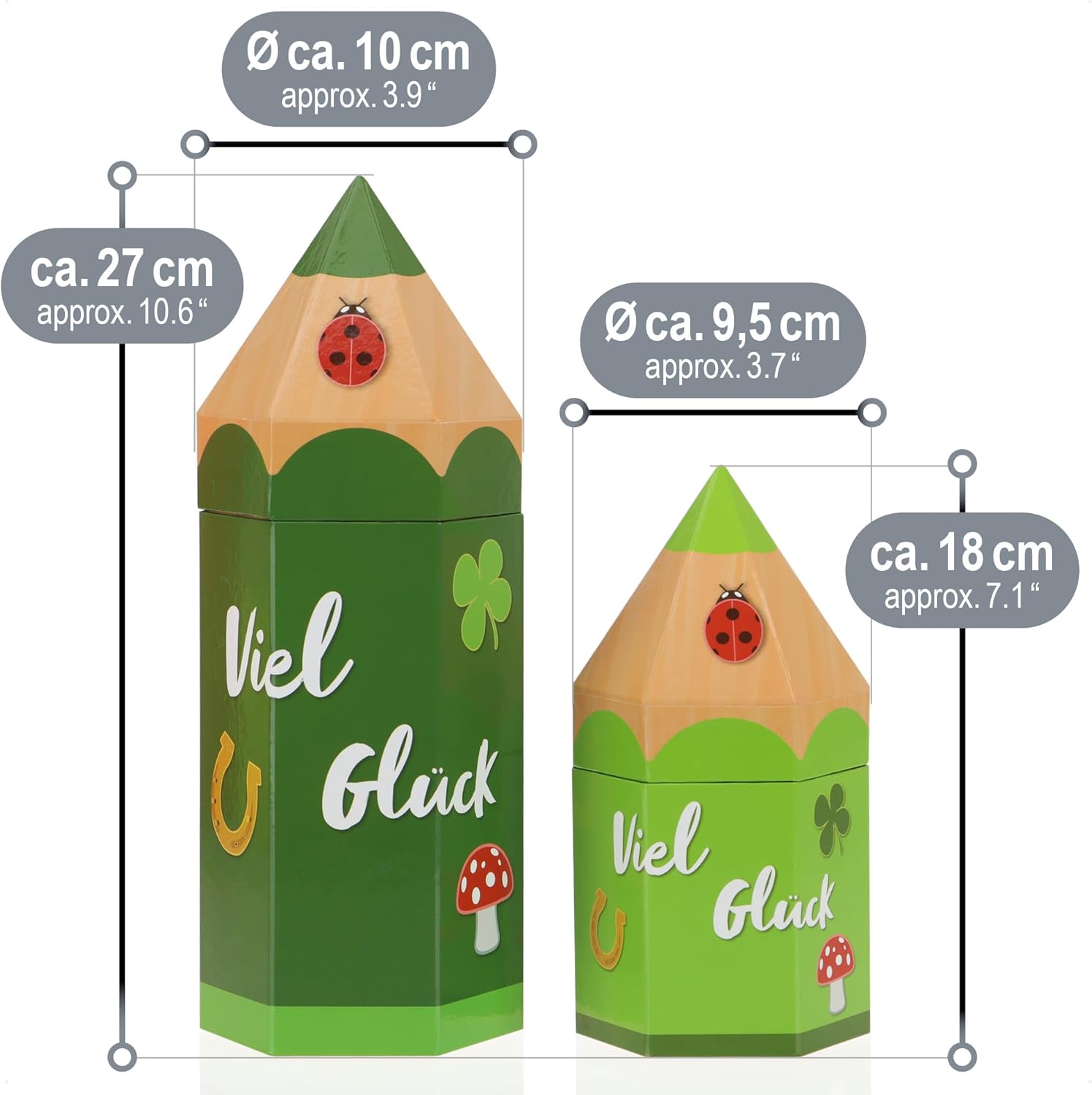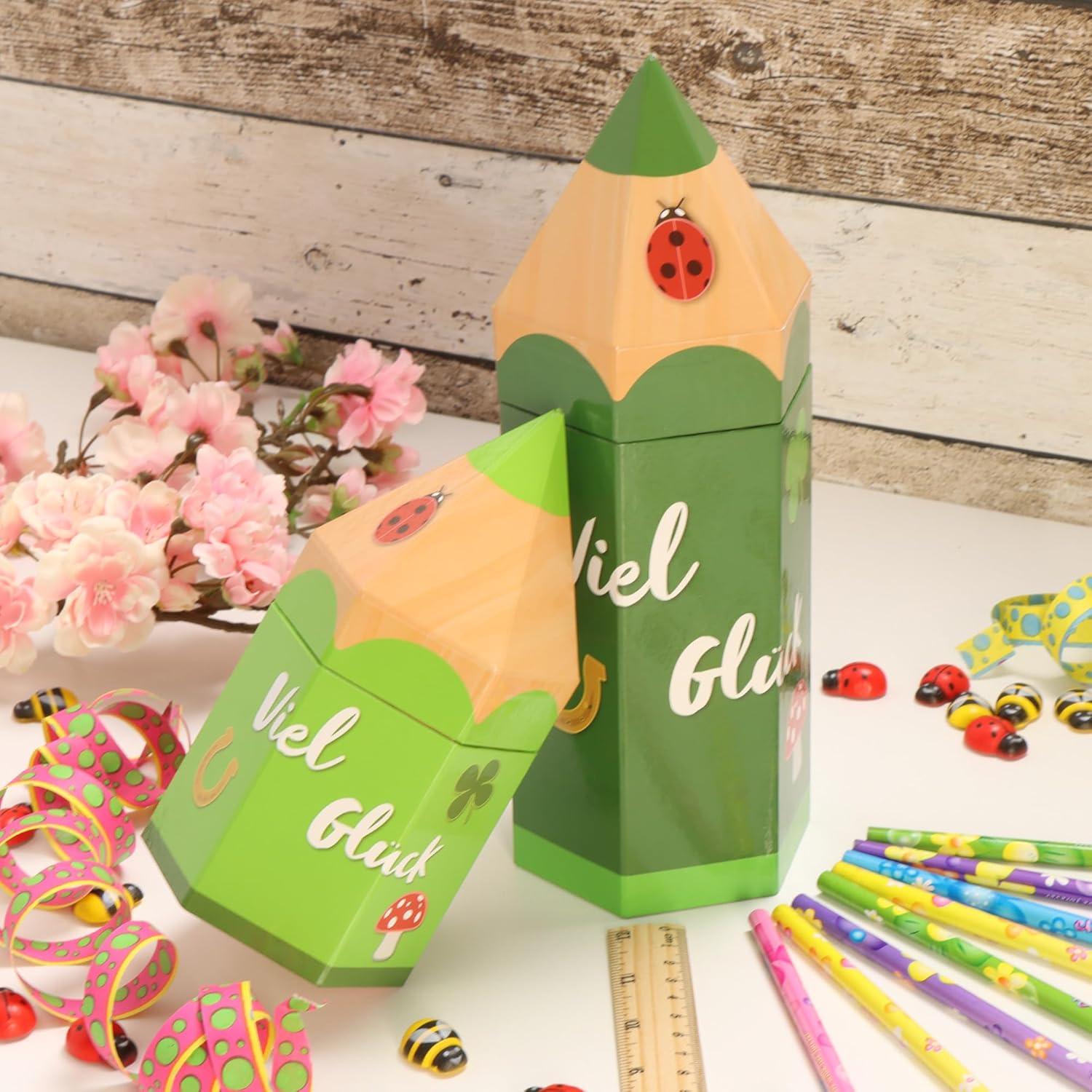 FELICE: il pratico sacchetto regalo a forma di matita con divertenti motivi scolastici ti fa venir voglia di imparare! SOSTENIBILE: Gli zaini scolastici quadrati sono realizzati in robusto cartone e possono essere facilmente utilizzati per riporre il materiale scolastico! PRATICO: le robuste scatole di cartone per l'inizio della scuola si riempiono rapidamente e sono facili da riporre in seguito! SORPRESA: la confezione regalo per i principianti della scuola è ideale per piccoli oggetti come bussole, penne e giocattoli! AMBITO DI CONSEGNA: 2x confezione regalo (1x per dimensione) // Materiale: cartone // Dimensioni: grande ca. 27 x 10 cm, piccolo ca. 18 x 9,5 cm (altezza x Ø) // Colore: verde chiaro (piccolo), verde scuro (grande) // Design: fortunato // Decorazione non inclusa!