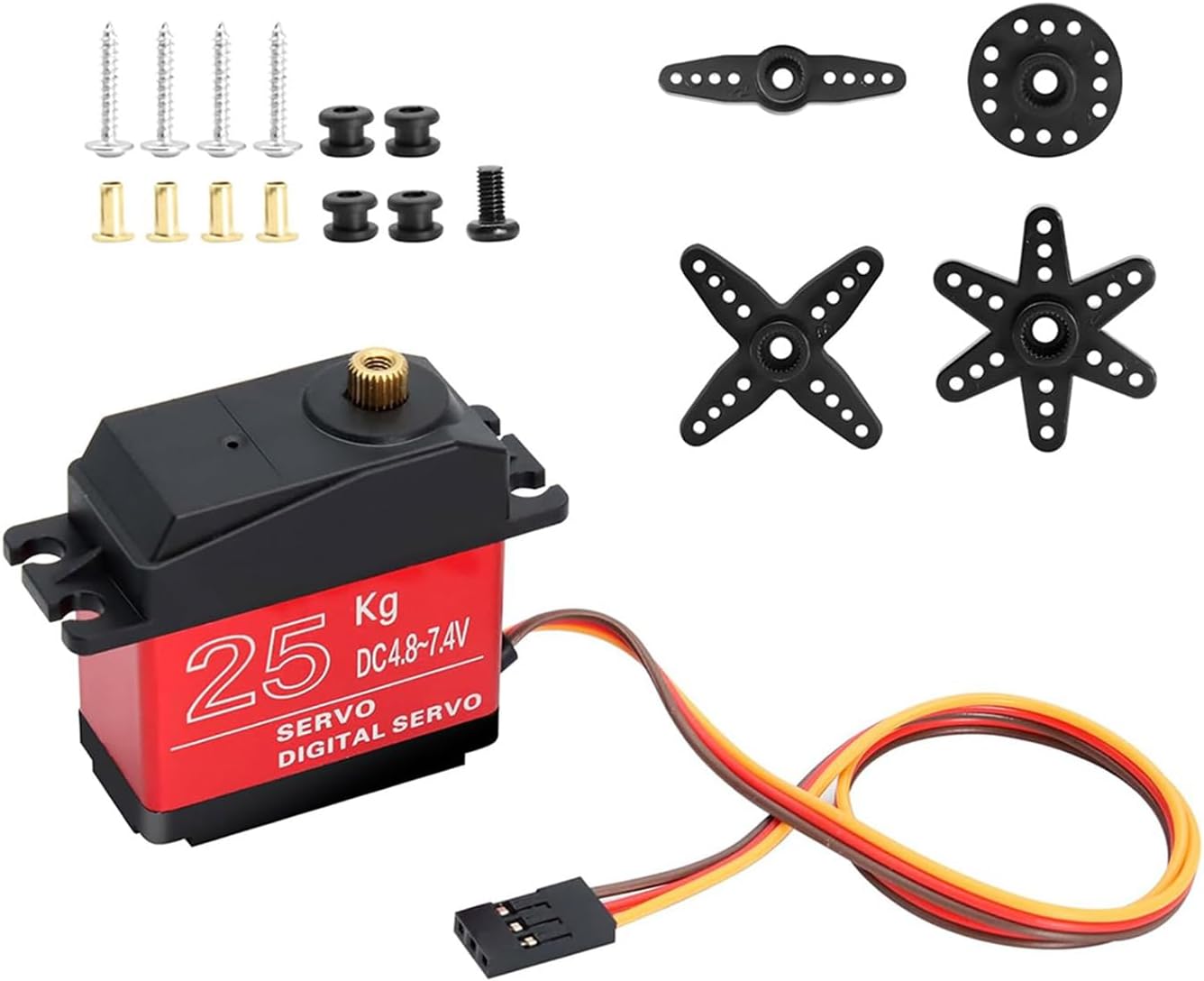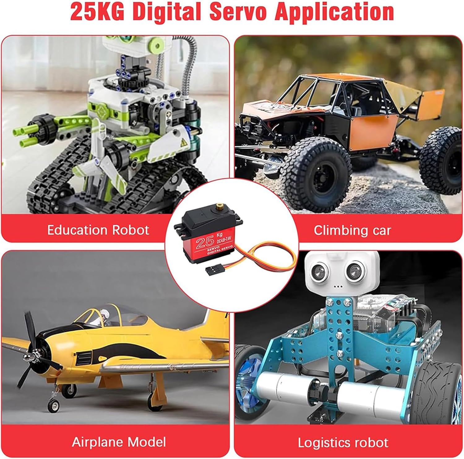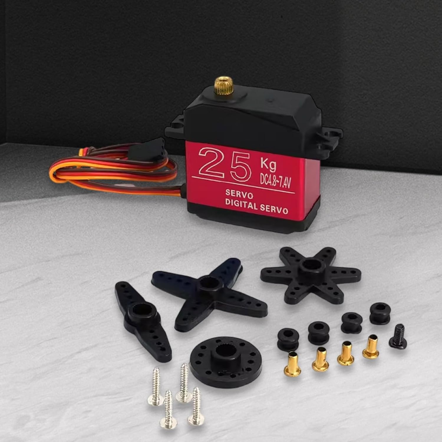 Migliora la funzionalità del tuo progetto con il servomotore da 25 kg, dove la tecnologia all'avanguardia incontra l'affidabilità, garantendo operazioni fluide anche negli ambienti più esigenti Scatena tutto il potenziale dei tuoi modelli con il servo digitale da 25 kg, dotato di ingranaggi in metallo per coppie e durata senza precedenti per gli appassionati di robotica, modellisti e hobbisti che richiedono elevate prestazioni di coppia per la loro creazione, da a bracci robotici Progettato per le precisioni, questo servo Digitals offre tempi di risposta rapidi e controlli ad alta precisione con i suoi sistemi di controllo avanzati, garantendo che i comandi vengano eseguiti in modo impeccabile nell'applicazione, questo servomotore per l'uso in aeroplani, elicotteri, barche, veicoli e progetti, migliorando la precisione del movimento su diverse piattaforme