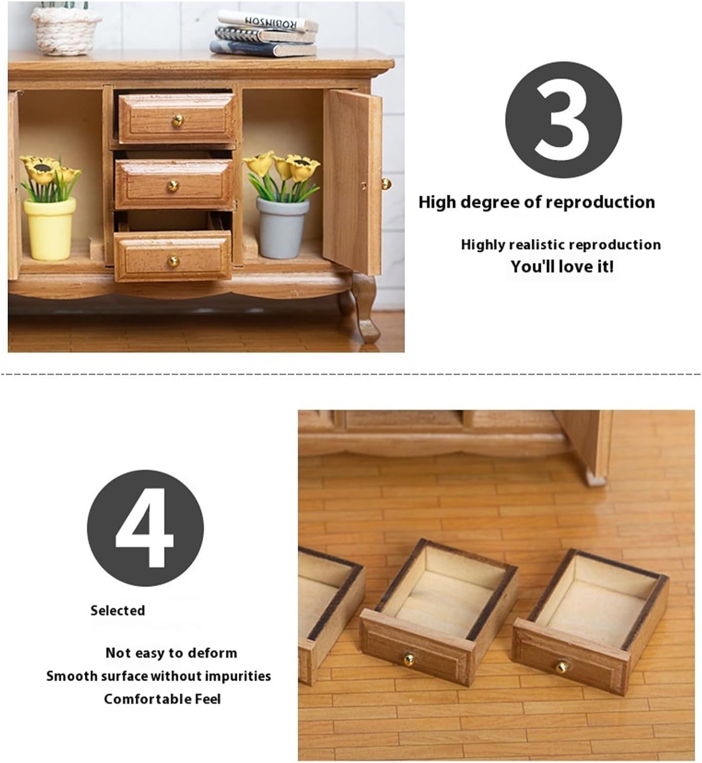Ideale per collezionisti di case delle bambole e appassionati di miniature alla ricerca di mobili simulati in scala 1/12 per completare l'ambientazione della loro stanza artigianale Migliora la camera da letto della casa delle bambole fornendo superfici robuste per cornici fotografiche o accenti decorativi accanto al letto in miniatura Migliora il tuo progetto di interior design in miniatura con questo accessorio per casa delle bambole in quanto aggiunge fascino e praticità organizzativa alle composizioni creative della scena Utilizzando materiali in legno precisi e di alta qualità, il delicato comodino mette in mostra le texture del legno e la costruzione robusta nel suo design compatto dei mobili della casa delle bambole Questo squisito comodino della casa delle bambole con caratteristiche in scala 1/12