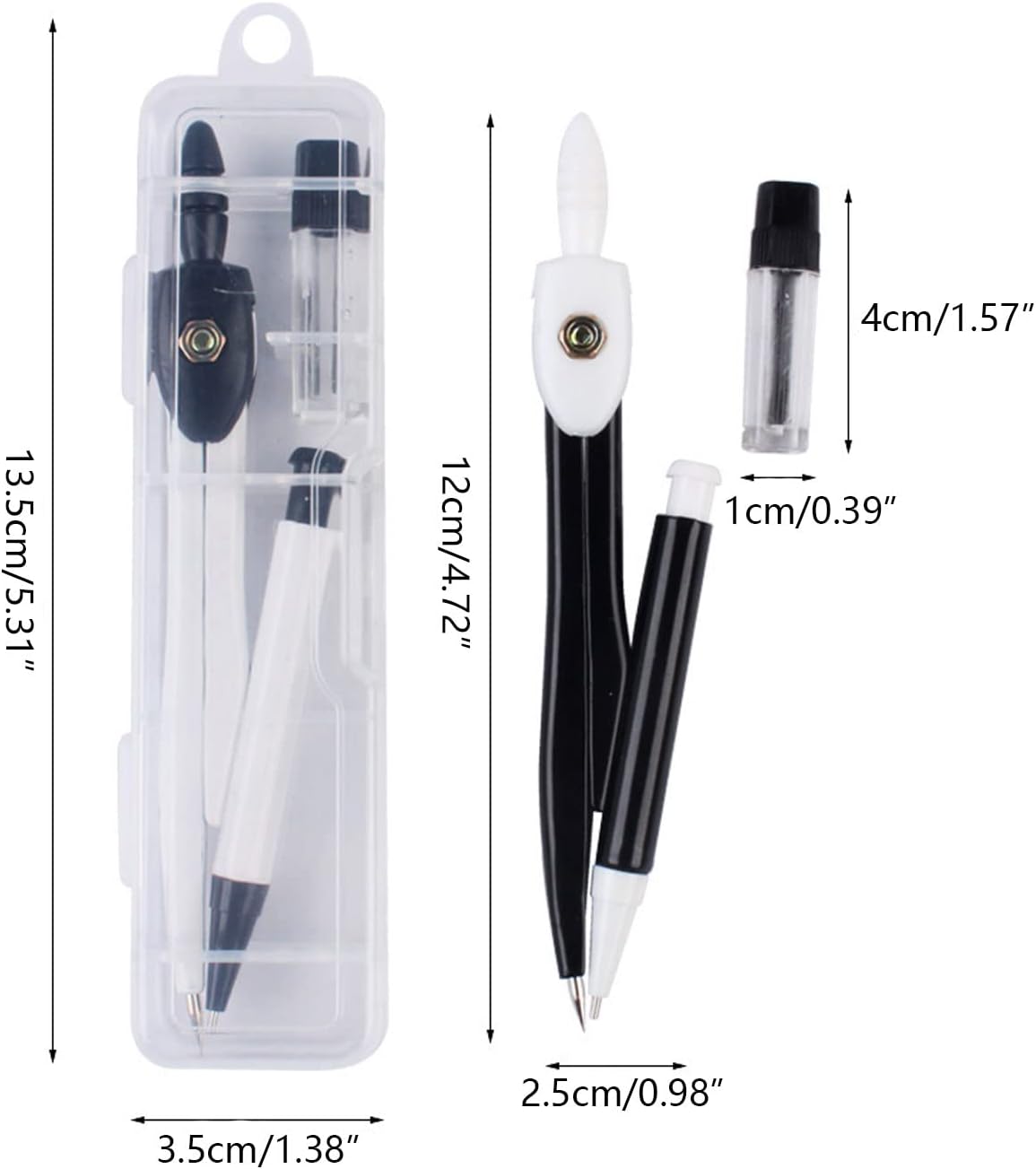 Portamatite per disegnare facilmente cerchi, adatto per studenti e altri Contenuto della confezione: 1 bussola in metallo e 1 scatola di mine da 0,7 mm in una custodia trasparente Bussola/divisore professionale in metallo per falegnameria, carpenteria, lavorazione del metallo, lavori in pelle, matematica Disegna archi e cerchi ripetutamente con elevata precisione dimensionale Realizzato da esso non arrugginisce o si corrode. Può essere utilizzato come divisore per misurare e copiare rapidamente le misure