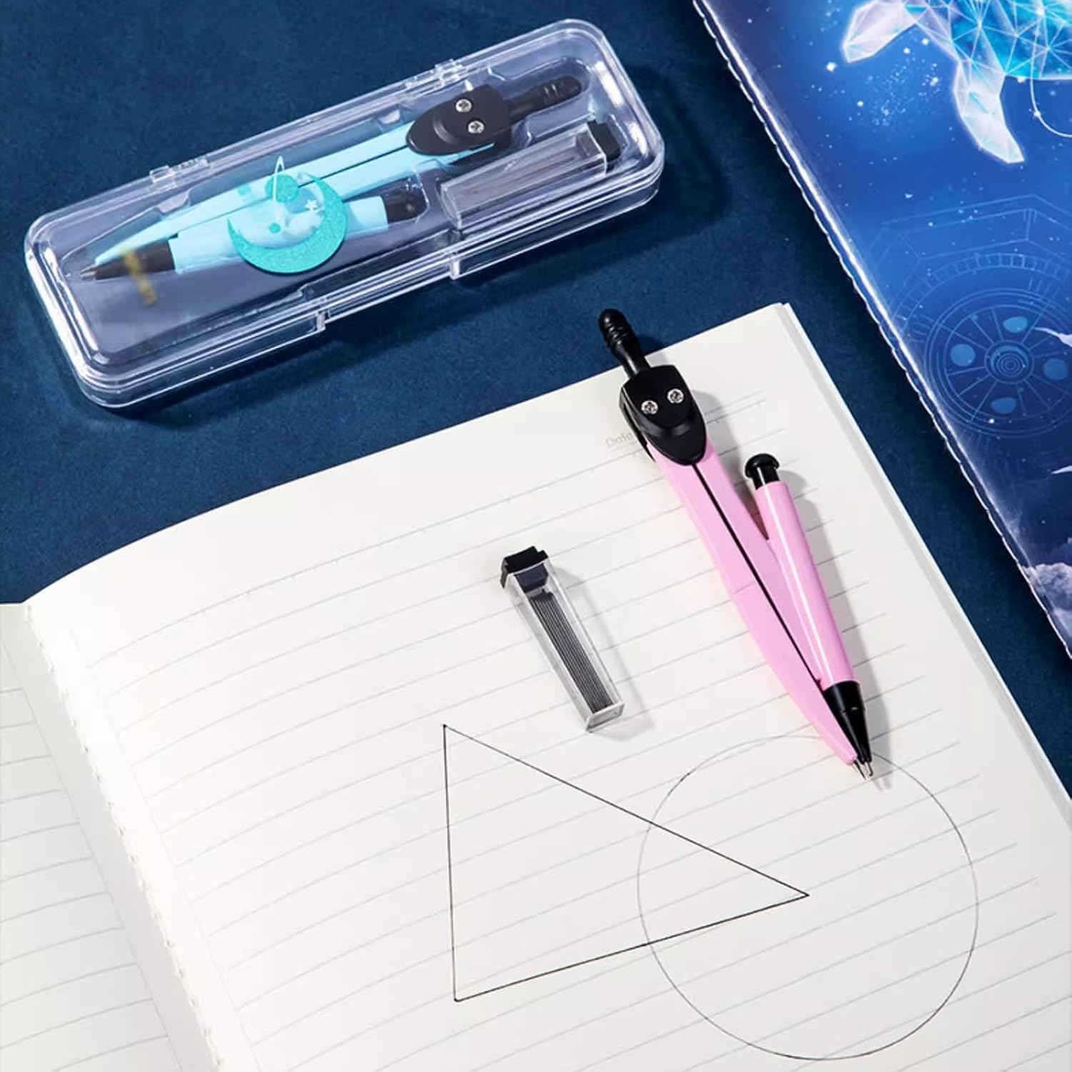 Materiale: plastica di alta qualità, confezionata in una custodia di plastica, mantiene gli strumenti in modo indipendente, in buone condizioni e facili da trasportare. Il set include: 1 bussola, 1 ricarica per matita Dimensioni: 45 * 137 * 18 mm Caratteristiche: Leggero, comodo e conveniente da mettere nello zaino, nella borsa o in ufficio, soddisfa tutte le tue esigenze matematiche e misurazioni quotidiane. Occasione: perfetta per la scuola, l'ufficio e la casa, bel regalo per scolari, insegnanti, architetti, ingegneri, artisti, designer e altri professionisti. Applicabile a tutti i livelli: ottimo per l'uso a scuola o a casa. Il miglior strumento per disegnare cerchi per studenti, artisti, matematici, falegnami. È un'ottima scelta per le lezioni di matematica.