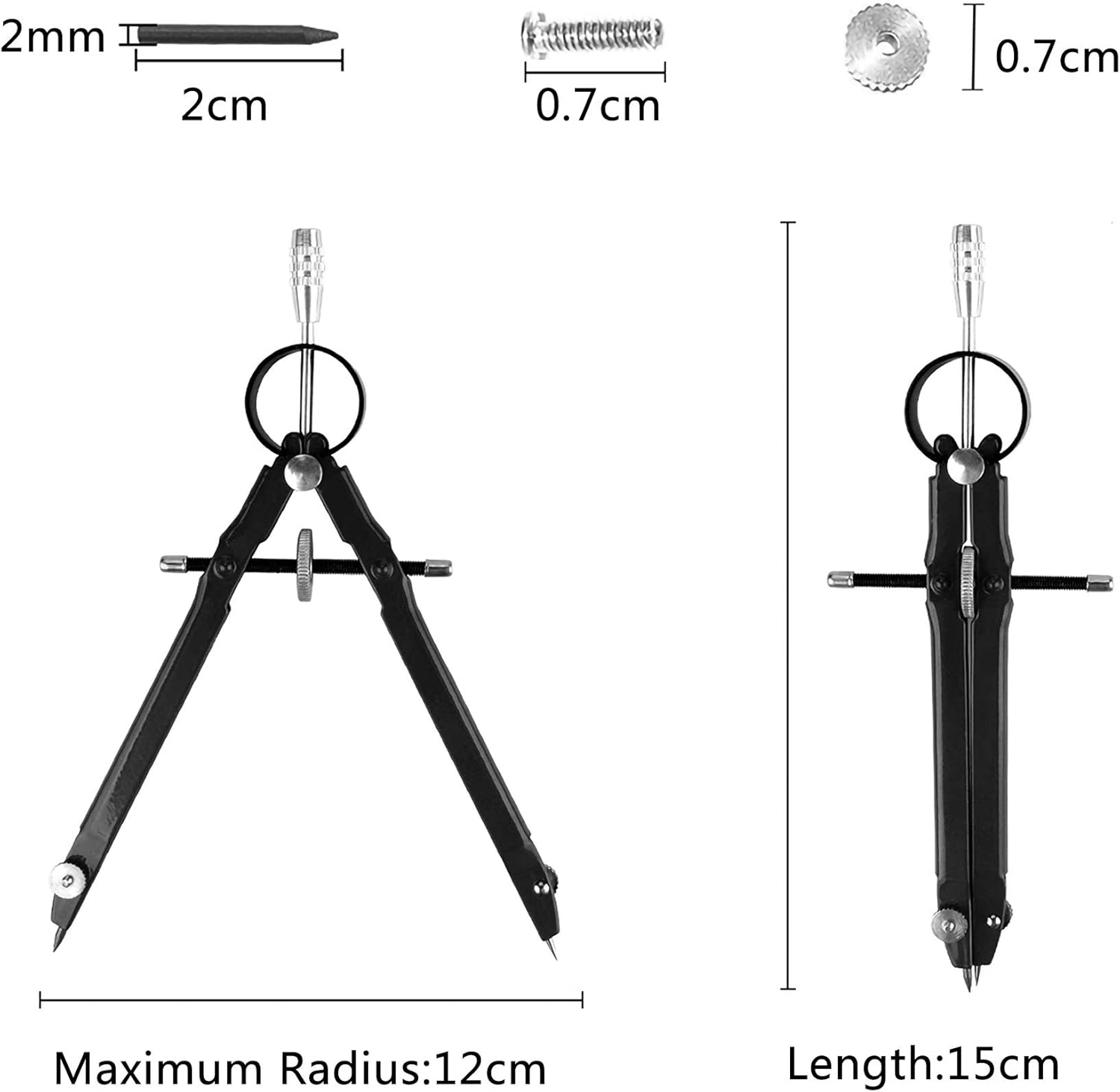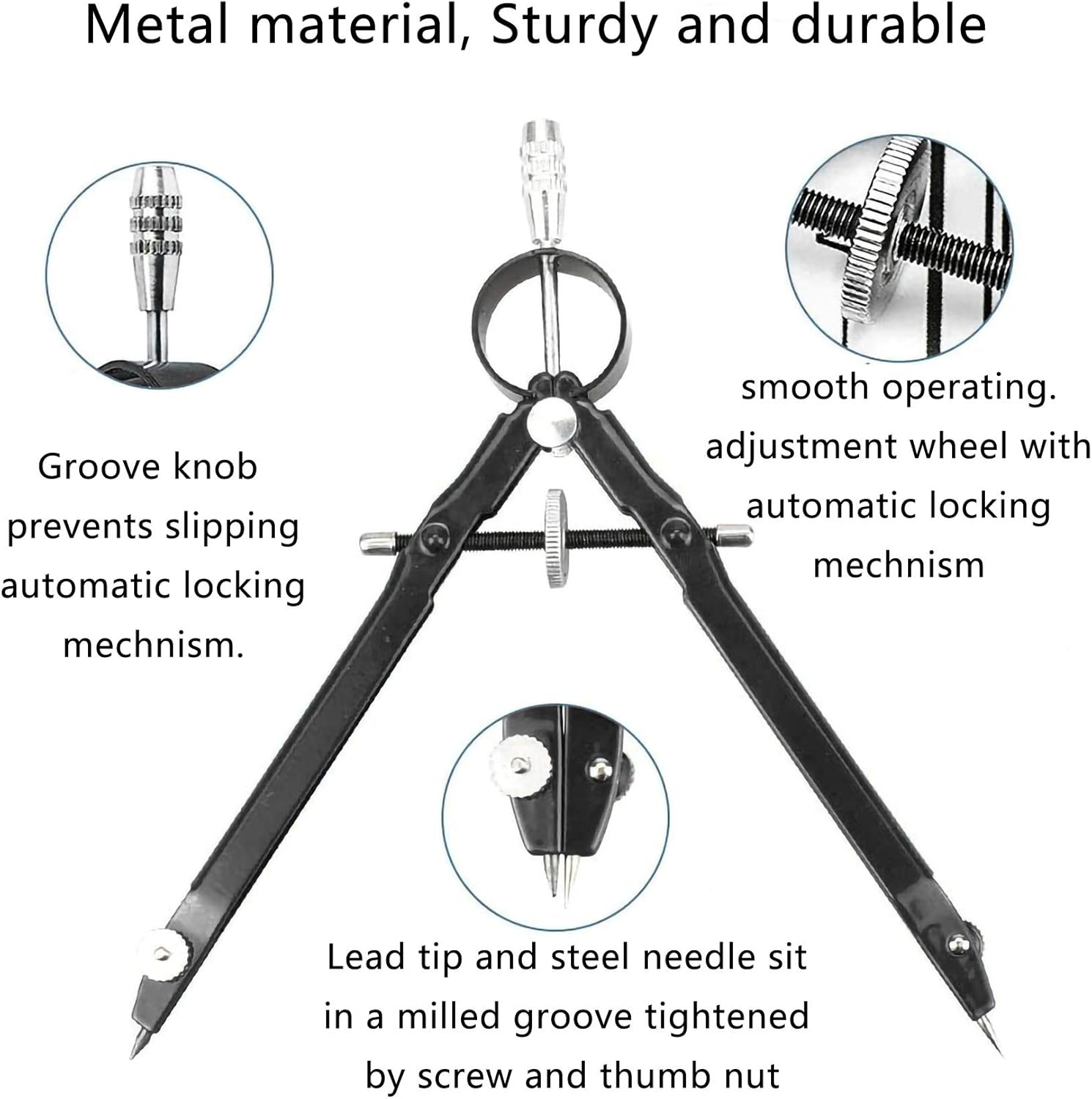 [Precisione ed alta qualità] - Semplice e veloce e precisa dell’ampiezza e tramite una rotellina centrale. [Lunghezza del compasso] - 150 mm.Con il compasso si possono disegnare cerchi fino a 240 mm di diametro. [Materiale] - Realizzato di metallo, robusto e leggero, facile da maneggiare. [Design] - La parte superiore scanalata garantisce una presa sicura e antiscivolo. [compassi per disegno tecnico multiuso] - Eccellente per l'uso nelle scuola media, scuola elementare, cuola superiore, carpenteria o a casa. La migliore compassi professionali per disegno tecnico per studenti, artisti, matematici e carpentieri.