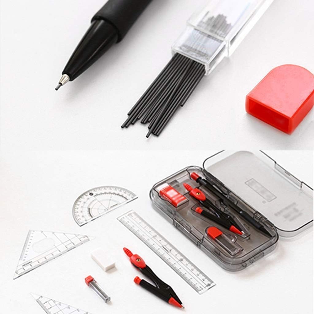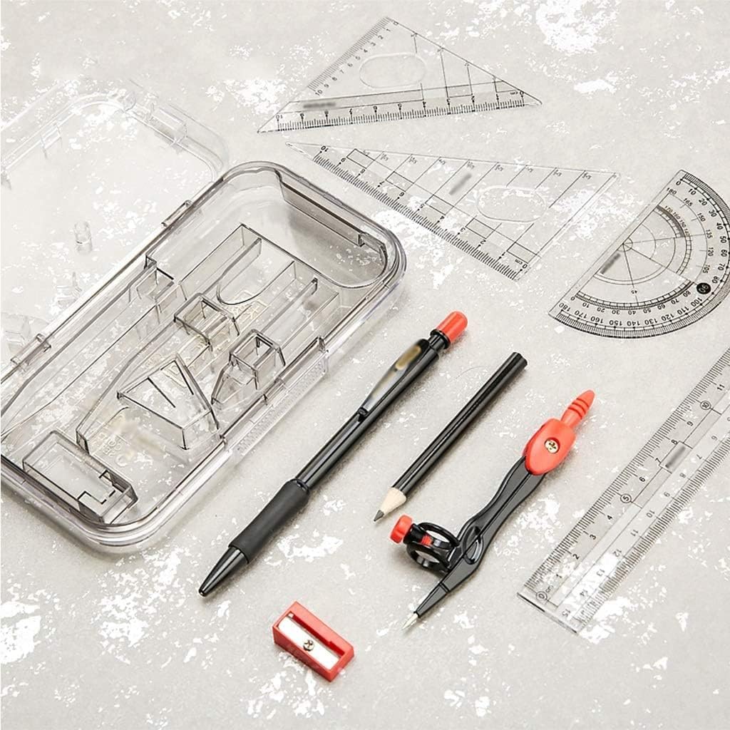 Un'ottima scelta per insegnanti e studenti. È anche un regalo perfetto per bambini e amici, facile da portare in classe e da conservare in classe e a casa. Sceglilo come regalo per la stagione scolastica o per Natale. La confezione include: 1 compasso, 1 matita meccanica, 1 matita, 1 righello, 1 squadra (30°/60°), 1 squadra (45°), 1 goniometro, 1 temperamatite. Set di 8 pezzi per geometria e compasso in una scatola riutilizzabile, facile da trasportare e riporre. Realizzato in metallo di alta qualità, durevole e stabile. Ottimo per l'uso a scuola, nella lavorazione del legno o a casa.