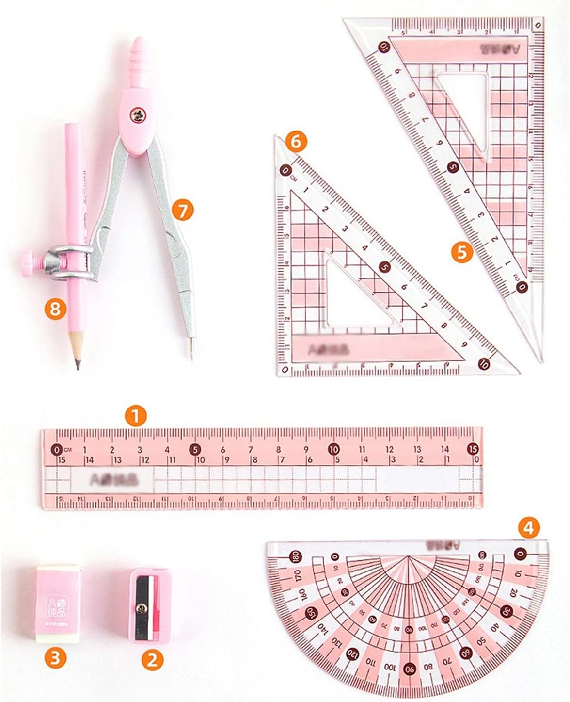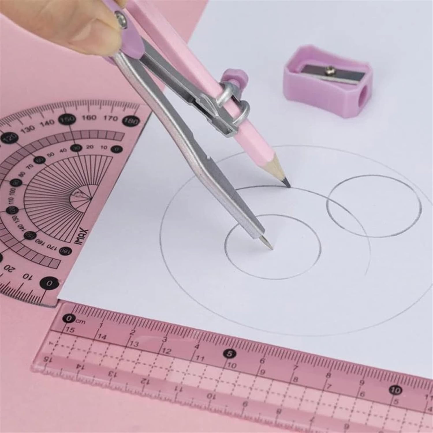 Il compasso universale funziona con qualsiasi matita o penna di dimensioni standard, i righelli, i triangoli e i goniometri sono dotati di graduazioni per una facile identificazione. 1. Compasso in lega di zinco di alta qualità, disegno circolare preciso, stile innovativo. 2. Righello spesso di alta qualità, dal design innovativo, con scala precisa e resistente alla caduta. È più resistente dei normali righelli sottili. 3. Matita in legno di alta qualità, scrittura fluida. 4. Materiale in PVC di gomma ecologico di alta qualità, con un effetto di pulizia migliore rispetto ai normali prodotti detergenti, risulta pulito dopo la pulizia.