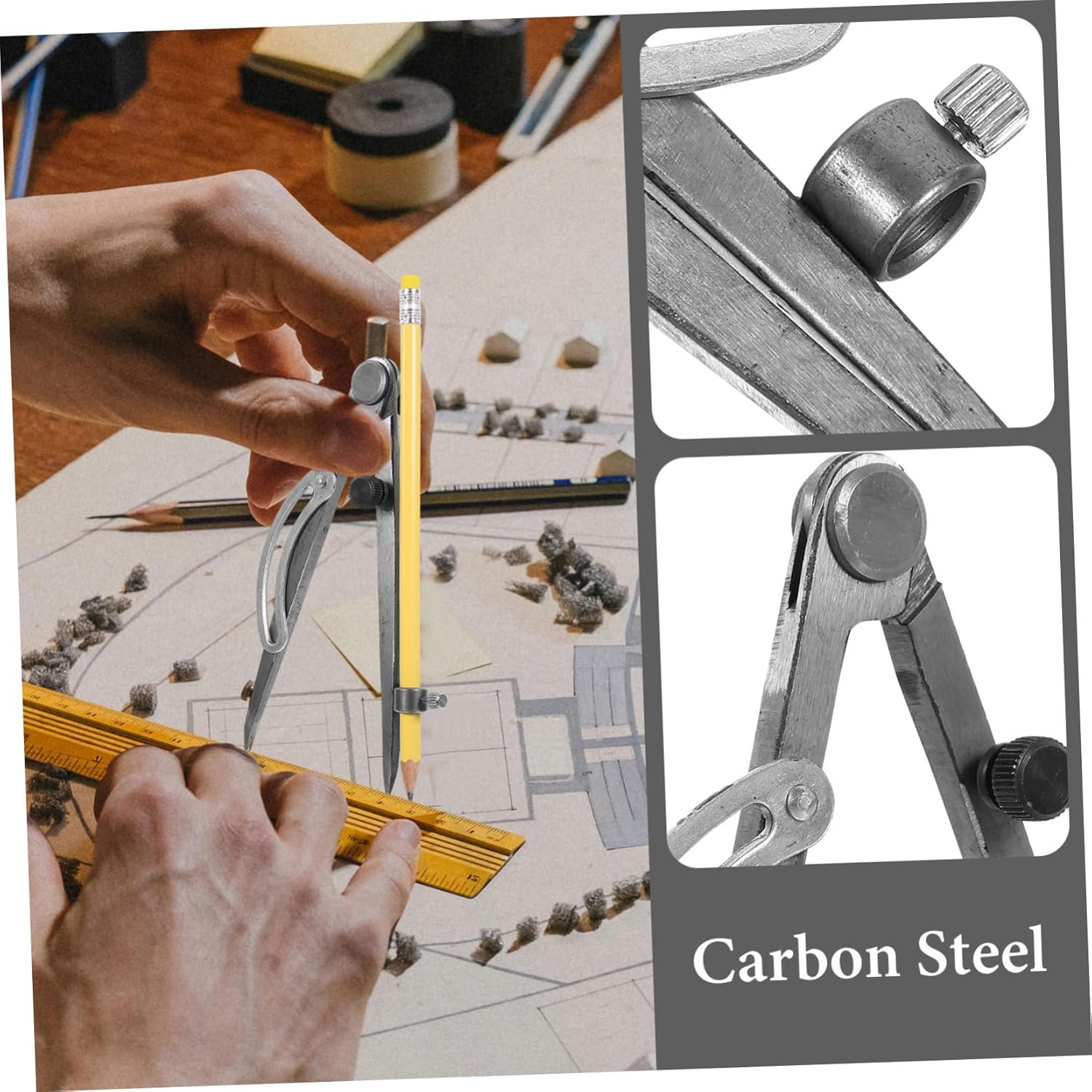 Tracciatore per metallo: che tu sia un professionista o un hobbista, questo strumento è una preziosa aggiunta al tuo kit di attrezzi per tutte le tue esigenze di misurazione e marcatura, bussole per artigianato in pelle Calibri di marcatura: questo strumento di misurazione della spaziatura è realizzato in acciaio al carbonio, garantendone la longevità, strumento di disegno del compasso Strumenti per cucire fatti a mano: il raggio assicura misurazioni accurate, consentendo una marcatura e un taglio precisi, compasso geometrico Compassi per lavori in pelle: questo strumento bussola è adatto sia ai professionisti che agli appassionati del fai da te, soddisfacendo un'ampia di utenti con diversi livelli di abilità ed esigenze, bussola in metallo Compasso per mobili: le sue dimensioni compatte e la struttura leggera lo rendono facile da riporre e trasportare, rendendolo un'aggiunta comoda a qualsiasi kit di attrezzi, bussola in pelle multifunzione