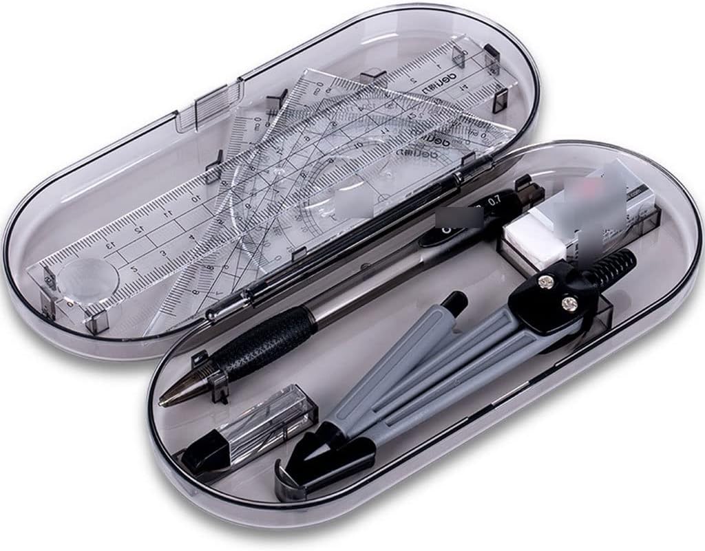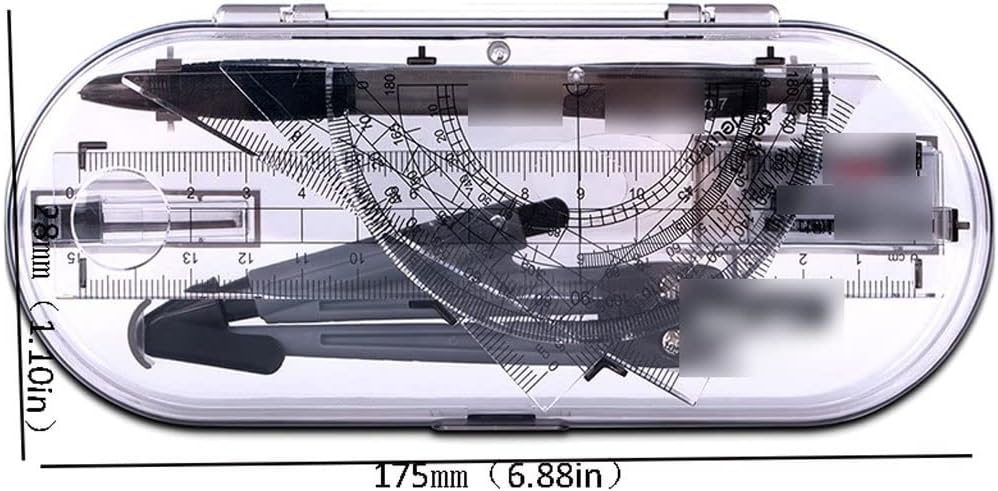 Adatto a professionisti e studenti, esigenze di matematica, geometria, disegno e disegno tecnico La bussola è inserita in una custodia riutilizzabile per facilitarne il trasporto e la conservazione. Dimensioni: 28 mm (1,1 pollici) * 175 mm (6,88 pollici) La confezione include: triangolo (45° e 30°/60°/90°), righello da 15 cm, 1 matita automatica, ricarica, Per lezioni di geometria, disegno tecnico, disegni architettonici, progettazione ingegneristica, inclusa progettazione meccanica e costruzione.