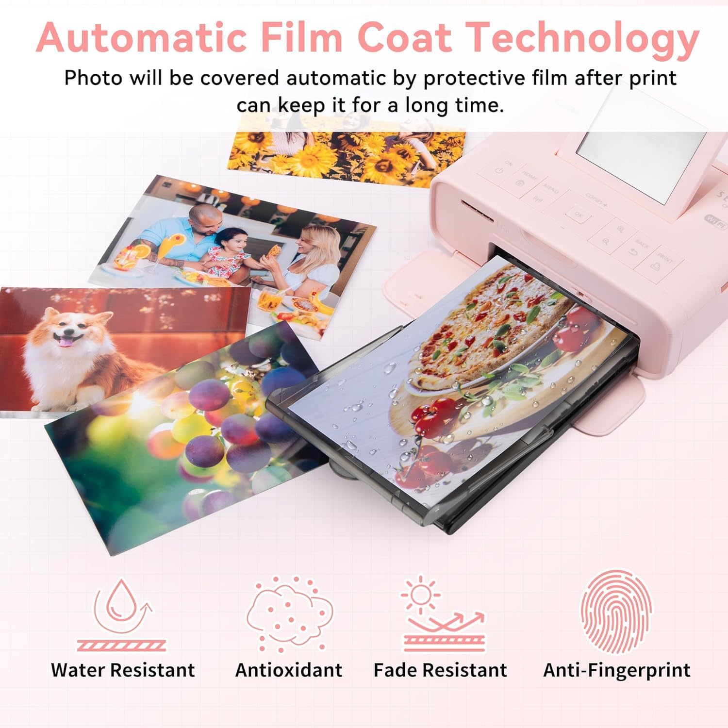 Wonfoucs Ricambio per Canon Selphy CP1300 inchiostro e carta Il set include 3 cartucce d'inchiostro a colori e 108 fogli di carta fotografica lucida 4x6. Dimensioni cartolina: 100 x 148 mm (4" x 6"). Modello: KP-108IN KP108 set di inchiostro e carta. Compatibile con stampanti fotografiche Canon Selphy serie CP: CP1300 CP1200 CP1000 CP1500 CP910 CP900 CP820 CP810 CP800 CP790 CP780 CP770 CP760 CP740 CP730 CP720 CP710 CP600 CP510 CP400 CP330 CP300 CP220 CP200 CP100 Grazie alla tecnologia di stampa a sublimazione, la carta Canon Selphy compatibile si asciuga all'istante e viene coperta da una pellicola protettiva dopo la stampa. Può garantire efficacemente che la superficie della carta fotografica sia priva di macchie e idrorepellente, i colori rimangano luminosi e non sbiadiscono, rendendolo più resistente. La stampa liscia lo rende più professionale. La carta compatibile con Canon Selphy CP1300 stampa in formato cartolina da 4 x 6 pollici. Puoi usarlo a casa, in ufficio e ovunque per stampare immagini colorate e catturare ogni bel momento della tua vita su Foto per foto! Note importanti: 1. Se il nastro della cartuccia d'inchiostro è allentato, è meglio stringere la penna a sfera prima dell'installazione per evitare inceppamenti. 2. Installare il nastro dopo aver acceso la stampante, quindi rimuoverlo dopo la stampa per evitare di sprecare il nastro!