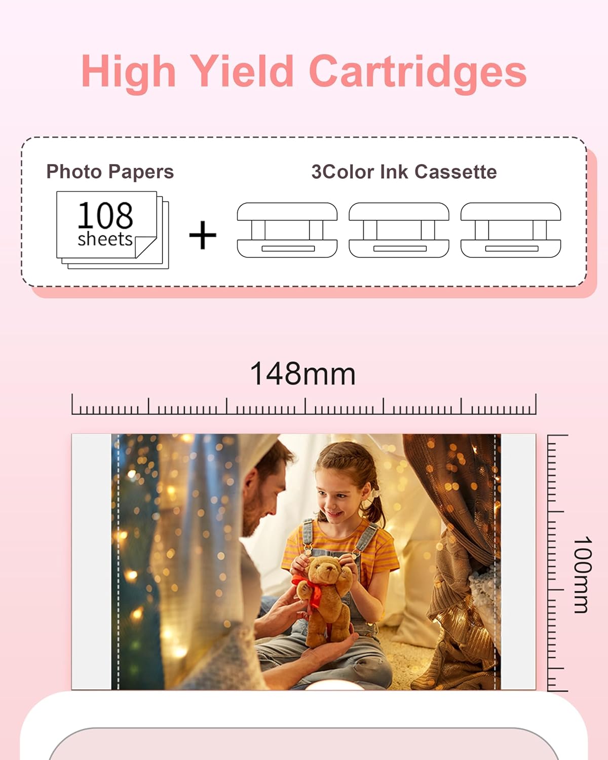 Carta fotografica da 108 fogli con 3 cassette di inchiostro (un inchiostro per 36 fogli) FORMATO CARTA: 4 x 6 "/ 100 x 148 mm, circa formato cartolina | MODELLO: KP108IN 3115B001 (AA) Compatibile con la stampante per Canon selphy serie CP: CP800 CP810 CP820 CP900 CP910 CP1000 CP1200 CP1300 CP1500 Compatibile con la stampante per Canon selphy serie CP: CP100 CP200 CP220 CP300 CP330 CP400 Compatibile con la stampante per Canon selphy serie CP: CP510 CP600 CP720 CP730 CP760 CP770 CP780 CP790 ecc. Presenta la tecnologia di sublimazione della tintura per asciugare all'istante, senza sbavature e resistente all'acqua.