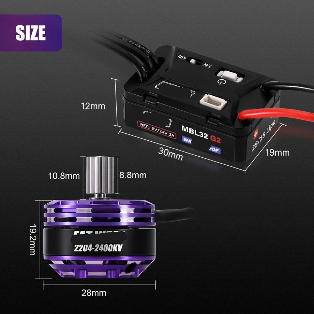 - -Performance MBL32 G2 ESC senza spazzole impermeabile offre un controllo di potenza e una durata affidabili in varie condizioni meteorologiche - Il motore a outtranner a grasso 2204 compatibile offre una coppia e una velocità efficienti per un'esperienza di guida avanzata - Progettato per l'uso con veicoli SCX24 in scala 1/24, garantendo prestazioni di adattamento precise e ottimizzate - La tecnologia senza spazzole migliora l'efficienza, riduce il calore ed estende la vita durante l'uso esteso - ESC impermeabile protegge dall'umidità e dalla polvere, rendendolo adatto per ambienti sia interni che esterni - Ideale per hobbisti e appassionati di RC che cercano una migliore accelerazione e una gestione reattiva nei veicoli su piccola scala