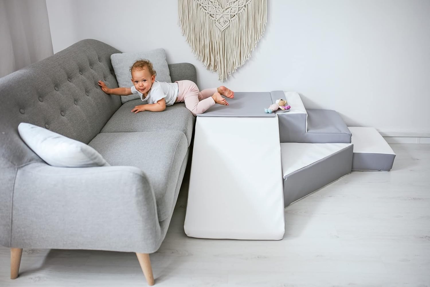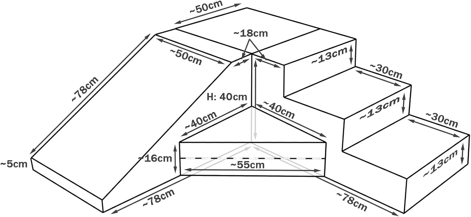 Il completo SCIVOLO è composto da quattro blocchi in schiuma. I blocchi in schiuma sono perfetti per asili nido, scuole materne o sale giochi. Tutti gli elementi sono sicuri e morbidi. Possono essere usati per giocare o semplicemente per sedersi. Materiale in spugna - schiuma tappazzeria T-21 con certificato igienico, elevata resistenza alla ammaccature.