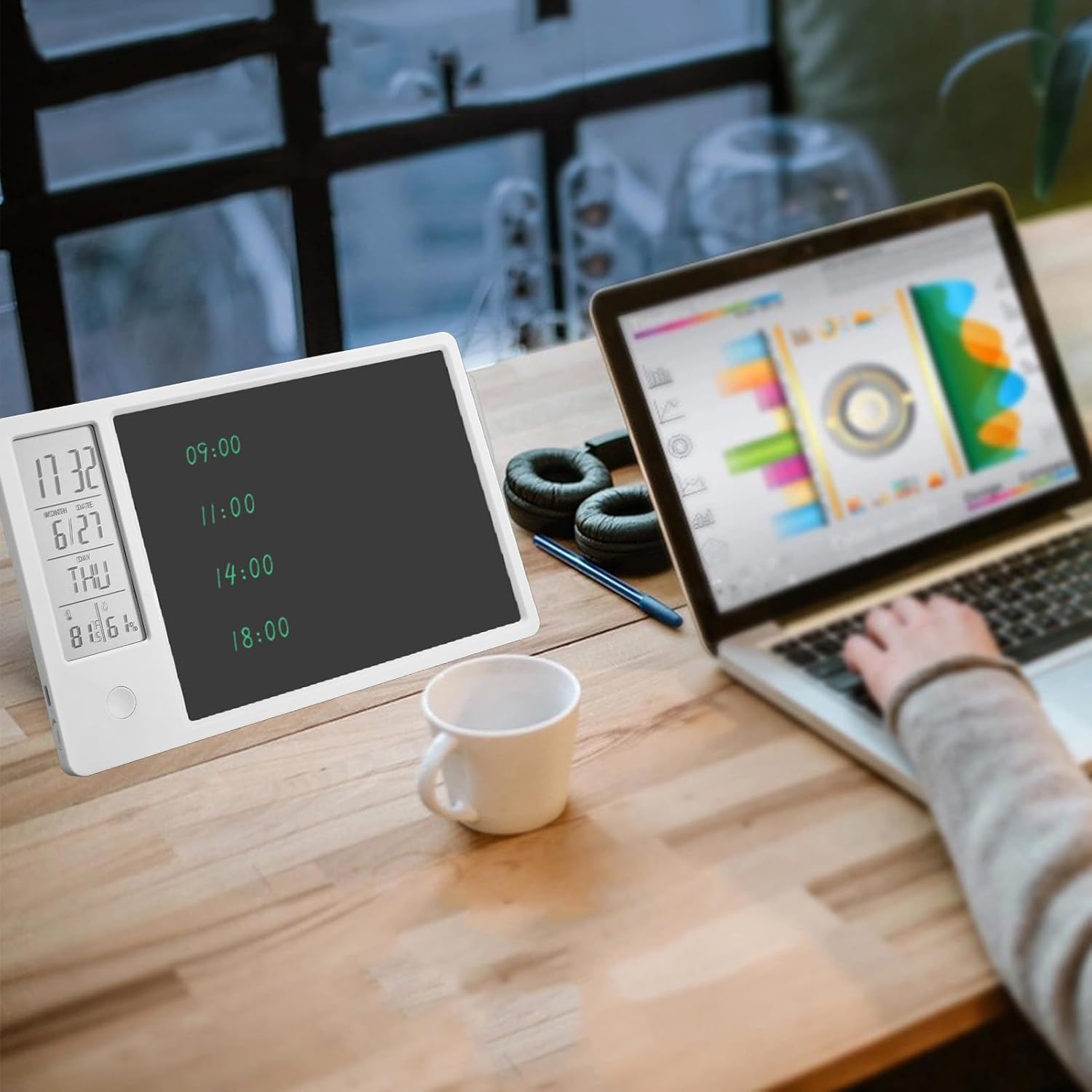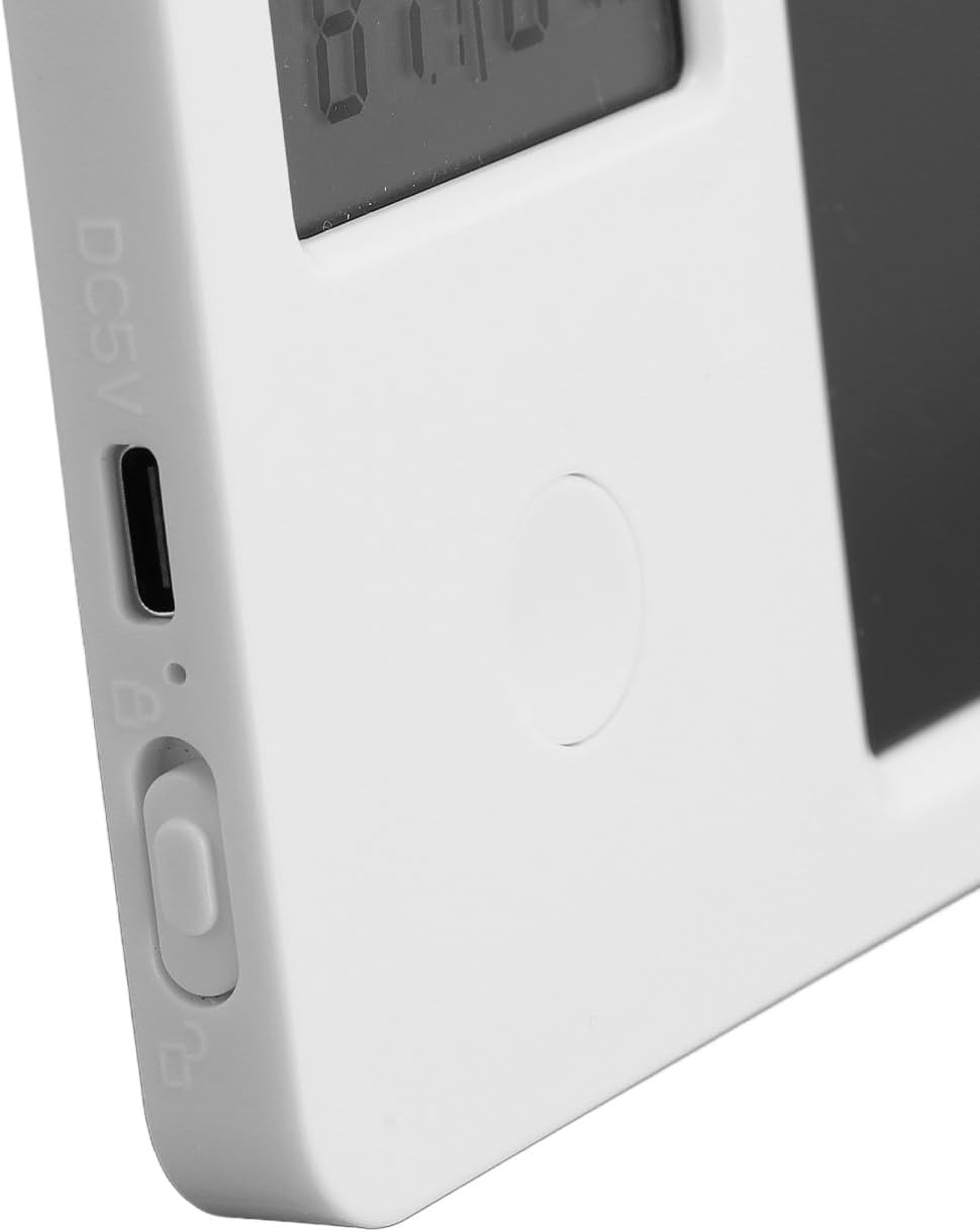 AMPIO UTILIZZO: puoi scrivere il tuo itinerario sulla lavagna elettronica e impostare allarmi per risolvere il fastidio che tendi a dimenticare. per l'ufficio e l'uso domestico. Può essere utilizzato come promemoria sveglia, orologio intelligente, lavagna per appunti, lavagna, ecc. OROLOGIO DIGITALE CON TEMPERATURA E UMIDITÀ: Visualizza ora, data, giorno della settimana, temperatura e umidità sullo schermo LCD sinistro. commutabile 12/24 ore secondo necessità. Fahrenheit e Celsius sono liberamente convertibili. Facile da usare per tutte le età. TAPPETINO PER SCRITTURA: una combinazione di calendario da tavolo con funzioni standard e blocco per appunti, non può salvare efficacemente carta e penna, ma può anche calcolare e registrare ciò che desideri. Dotato di supporto pieghevole, può essere posizionato stabilmente sulla scrivania, sul banco da lavoro, sul comodino. DESIGN CANCELLABILE E STILO: blocco note elettronico da 10 pollici con funzione di cancellazione di un tasto. Lo stilo è magnetico e può essere posizionato sulla parte superiore o laterale del blocco note per un facile accesso. PORTATILE E RICARICABILE: questa tavoletta grafica LCD entra facilmente in una valigetta, borsa o zaino, così puoi portarla con te ovunque tu vada. Design ricaricabile, non è necessario sostituire le batterie, può essere caricato con cavo di ricarica di tipo C, una carica può fornire 3-6 mesi di utilizzo.