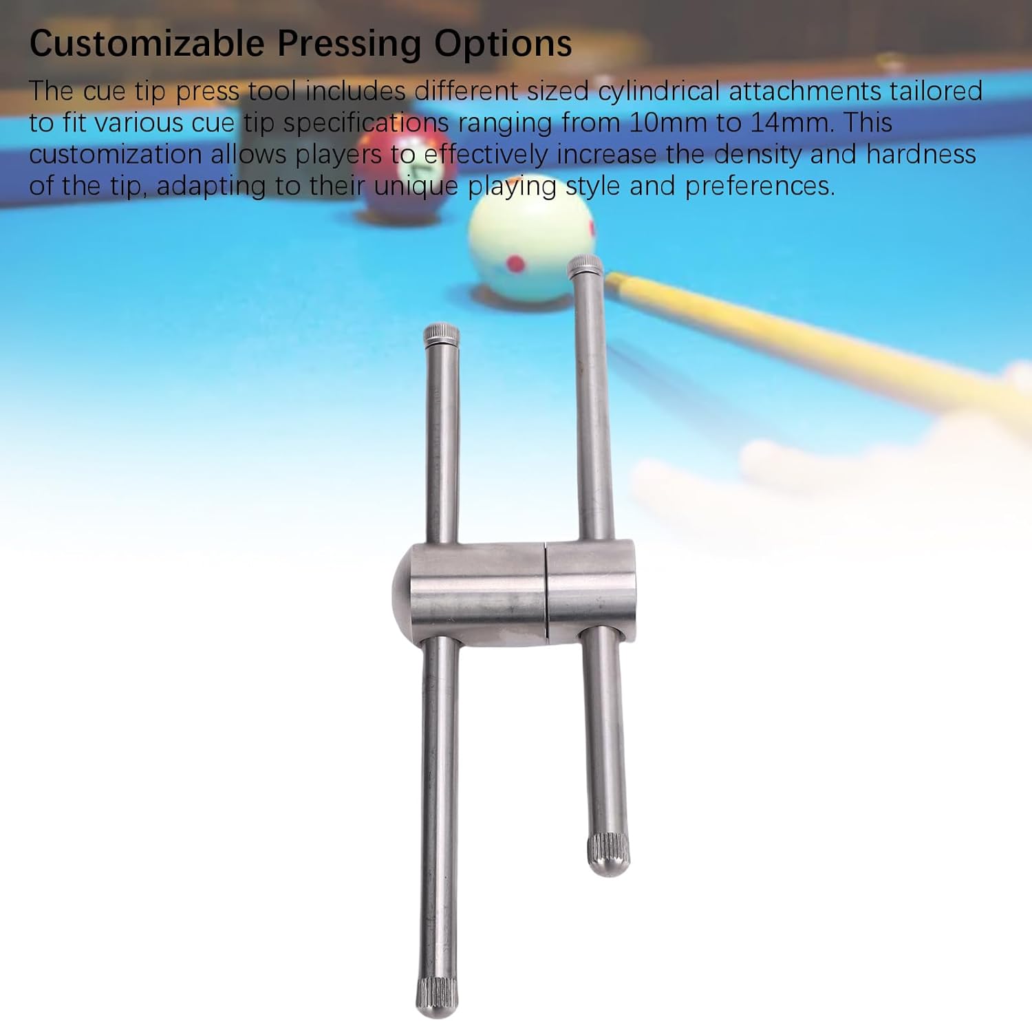 Costruzione durevole in acciaio inossidabile: questo compressore di punta di cue di biliardo e la punta del bastone è realizzato in acciaio inossidabile di alto grado, fornendo resistenza robusta e resistenza arrugginita. La sua costruzione solida garantisce prestazioni coerenti di accessori da snooker e longevità nel kit di manutenzione dei cue. Accessori personalizzabili per la pressatura dei cuoietti: la pressa per cuoietti da biliardo include quattro matrici cilindriche intercambiabili da 10 mm, 11 mm, 13 mm e 14 mm.Personalizza facilmente la tua pressa per cuoietti per adattarla a una varietà di cuoietti da biliardo e snooker, aumentandone la densità e la durezza per una sensazione e un controllo personalizzati. Funzionamento senza sforzo: progettato sia per principianti che per professionisti, questo strumento di pressione della punta della piscina presenta una vite di pollice ergonomica e una leva di rilascio rapido. Basta posizionare il compressore della punta del cue sulla punta, serrare per applicare una pressione uniforme e rilasciare per punte perfettamente compresse ogni volta. Compatibilità della cue universale: progettata per lavorare con la maggior parte degli accessori da snooker snooker e biliardo, questo strumento di stampa per punta di punta supporta una vasta gamma di modello di cue. Che tu stia preparando un segnale di casa o il tuo segnale di pausa personale, questo strumento garantisce una manutenzione di livello professionale. Coerenza e controllo migliorate: comprimendo uniformemente la punta della pelle, questo strumento di pressione della punta migliora la resilienza dell'impatto e l'impugnatura a sfera di cue, riducendo gli errori e salti. Solleva la routine del compressore della punta della piscina per ottenere colpi più nitidi e accurati su ogni frame.