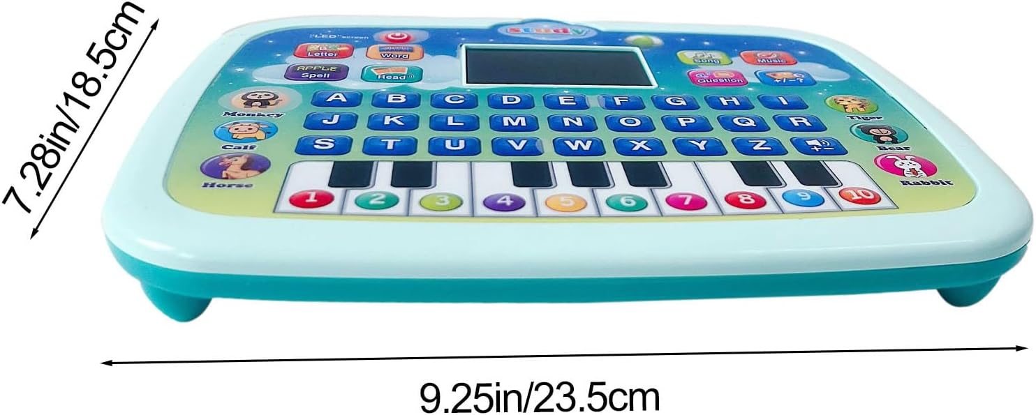 Giocattolo per tablet per bambini con 8 modalità: il giocattolo per tablet per bambini contiene 6 modalità di apprendimento, 2 modalità musicali, schermo LED, una funzione di domande interattive, una tastiera per pianoforte, spegnimento automatico senza operazioni per più di 1 minuto e 3 tipi di regolazioni del suono. Promuovi la prima educazione: lettere, numeri e parole sono inclusi in Toy Laptop, adatto all'uso da parte dei bambini, e aiuta i bambini a esprimersi chiaramente e capire ciò che sentono e leggono. Giocattolo musicale utile: il laptop per bambini ha più di 30 melodie, canzoni e versi di animali interessanti che sono molto attraenti per i bambini. I bambini possono persino suonare la propria musica da soli utilizzando la tastiera del pianoforte simulata! Incredibile funzione di domanda: Baby Toys Tablet può porre domande su lettere, parole, numeri, ecc. Per consolidare le proprie conoscenze. Quando i bambini vengono incoraggiati e affermati per la risoluzione di vari problemi, saranno fiduciosi e diventeranno studenti attivi! Regalo ideale per i bambini: il tablet di apprendimento per i più piccoli è adatto a bambini di età compresa tra 1, 2, 3 e 4 anni, così i bambini possono iniziare un interessante viaggio di apprendimento da soli.