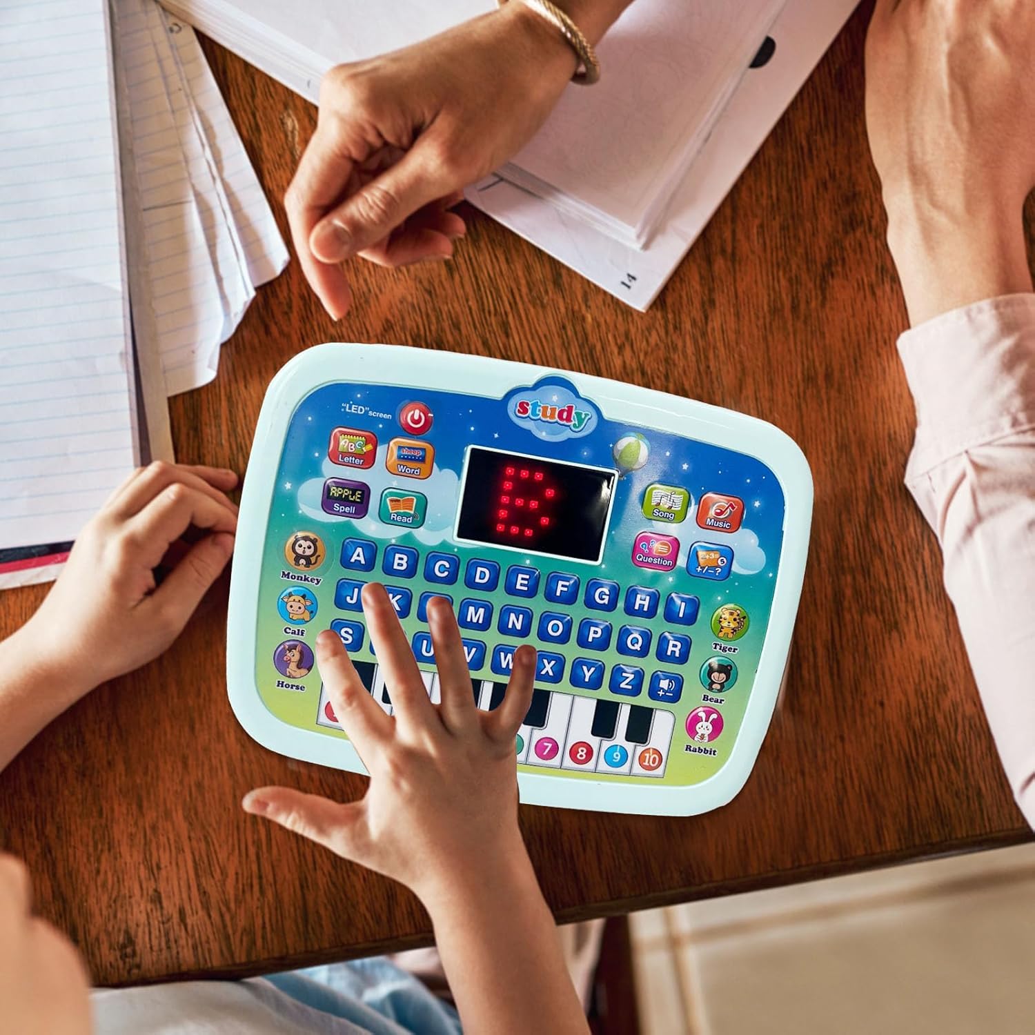 Giocattolo per tablet per bambini a 8 modalità: il giocattolo per tablet per bambini include 6 modalità di apprendimento + 2 modalità musicali, schermo LED, tastiera del pianoforte, spegnimento automatico senza funzionamento per più di 1 minuto e 3 regolazioni del volume. Ottimo per la prima educazione: Toy Laptop include lettere, numeri e parole come animali, cibo, frutta, personaggi e merci, i bambini possono imparare molte abilità da esso. Giocattolo musicale funzionale: i bambini possono utilizzare la tastiera del pianoforte di simulazione per suonare le proprie canzoni, il laptop per bambini ha più di 30 melodie, canzoni e versi di animali interessanti. Funzione di domanda interattiva: Baby Toys Tablet farà diventare i tuoi bambini studenti positivi, dopo essere stati incoraggiati e affermati risolvendo vari problemi. Regalo ideale per i bambini: il tablet di apprendimento per i più piccoli è adatto a bambini di età compresa tra 1, 2, 3 e 4 anni, così i bambini possono iniziare un interessante viaggio di apprendimento da soli.