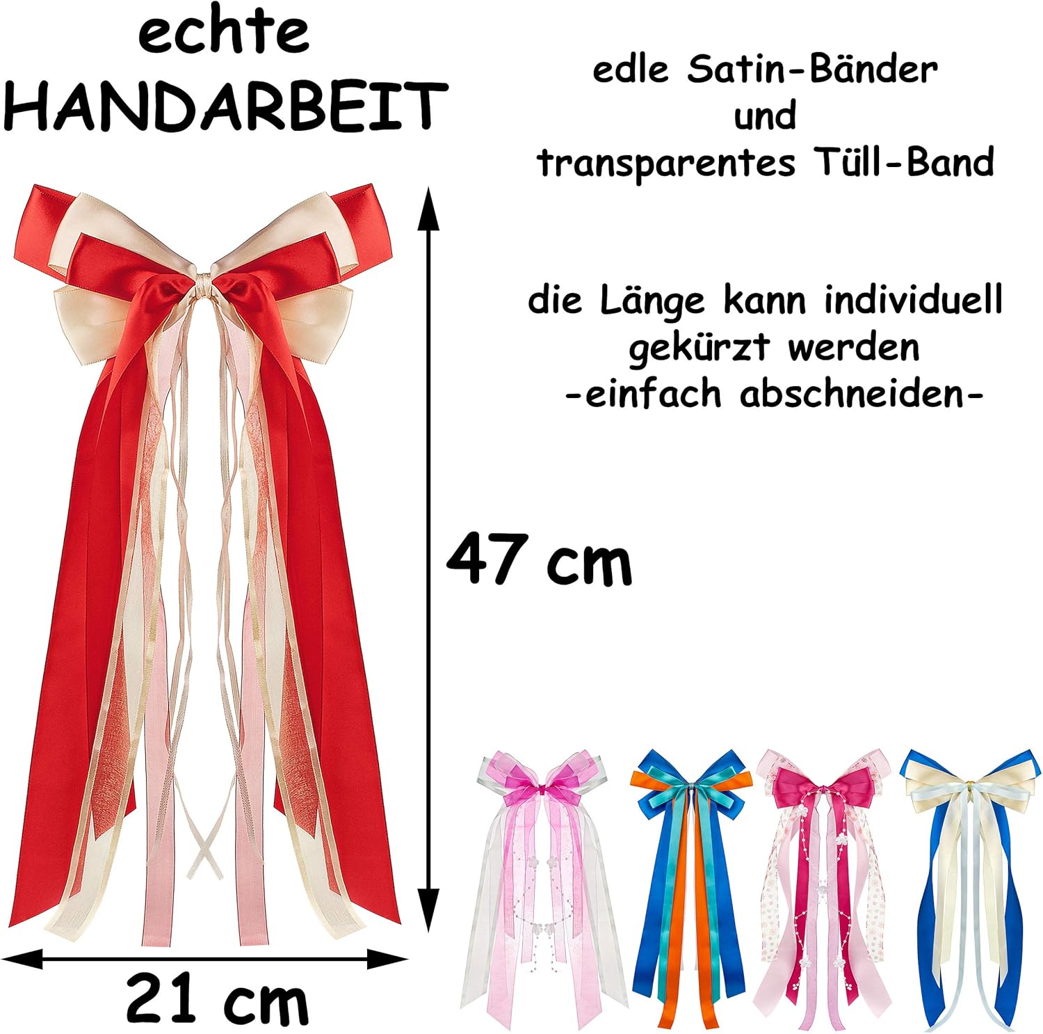 ACCESSORI Articolo adatto al TUO cono scolastico: _____ bellissimi, grandi ___ nastri in colori coordinati - fiocco (luccica in modo molto elegante) FATTO A MANO ____ i nastri hanno bellissimi effetti 3D, diverse larghezze e materiali, brillano meravigliosamente alla luce la chiusura del cono scolastico può essere legata insieme in modo bello e, ad esempio, si può legare saldamente un peluche ______ così il tuo cono scolastico attira l'attenzione ancora più bello ___ i colori del nastro vengono consegnati in colori vivaci misti (puoi vedi esempi nelle immagini ___ riceverai un fiocco che corrisponde al colore del tuo cono scolastico) ATTENZIONE: questo pulsante di selezione è SOLO per un fiocco cono scolastico _____ il cono scolastico deve essere cliccato e ordinato SINGOLARMENTE!