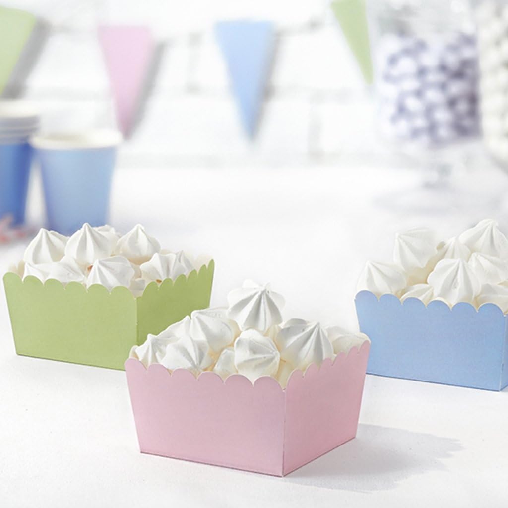 Scatoline contenitori per caramelle e dolcetti Colori Pastello Misure: 10,5 x 9,5 x 6 cm Materiale: cartoncino Ideale per feste, compleanni, baby shower, battesimi e comunioni
