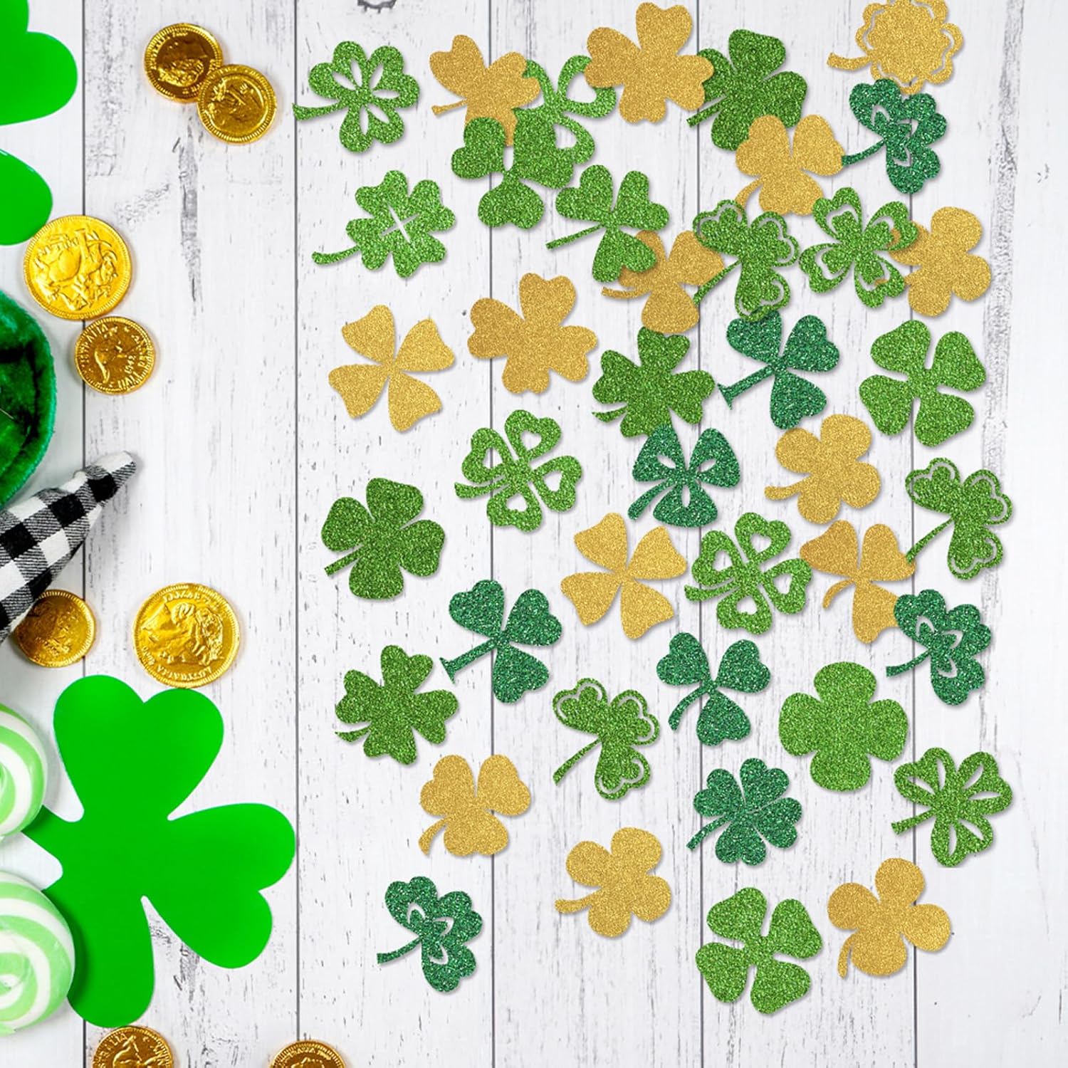 Per feste, sfilate ed eventi a tema, questi coriandoli sono un'ottima aggiunta alla tua collezione di decorazioni e accessori irlandesi per festival Questi coriandoli offrono un modo semplice per migliorare il tuo look festivo, rendendo un elemento essenziale per qualsiasi appassionato di festival irlandese Festeggia il festival irlandese con stili con i nostri coriandoli, presenta disegni temporanei di trifogli per condividere feste allegria con amici e familiari Questi coriandoli forniscono un accessorio divertente per qualsiasi celebrazione Questi coriandoli per chiunque cerchi di aggiungere un tocco di fascino alle loro feste irlandesi