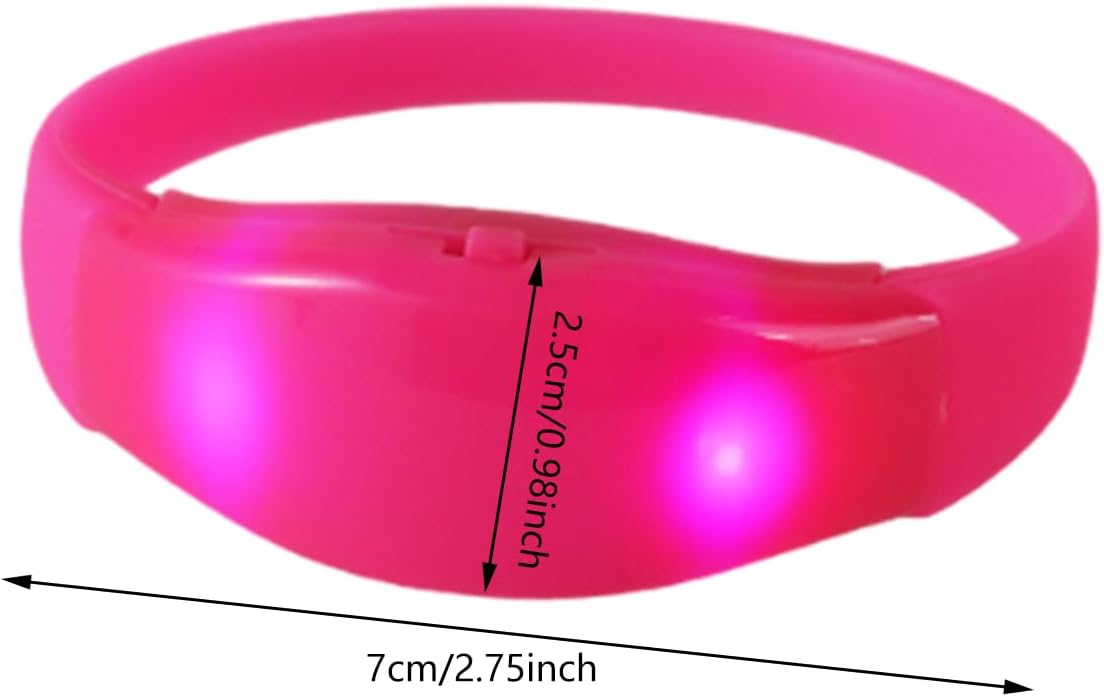 Adatto per eventi notturni come feste di compleanno, concerti, rave, questi braccialetti migliorano l'atmosfera e garantiscono condizioni di luce visibili ed eleganti Illumina la tua festa con i nostri bracciali, assicurandoti di distinguerti durante le feste Non solo un accessorio per feste, questi braccialetti possono anche fungere da dispositivo durante le attività notturne all'aperto, fornendo visibilità a genitori e avventurieri Perfetti per festaioli di tutte le età, questi braccialetti luminosi sono un successo tra bambini e adulti, aggiungendo un tocco di divertimento luminoso a qualsiasi abbigliamento Questi braccialetti sono disponibili in colori assortiti, ognuno realizzato in silicone e che sono gioielli luminosi attivati dal suono che possono lampeggiare in base alla frequenza del suono