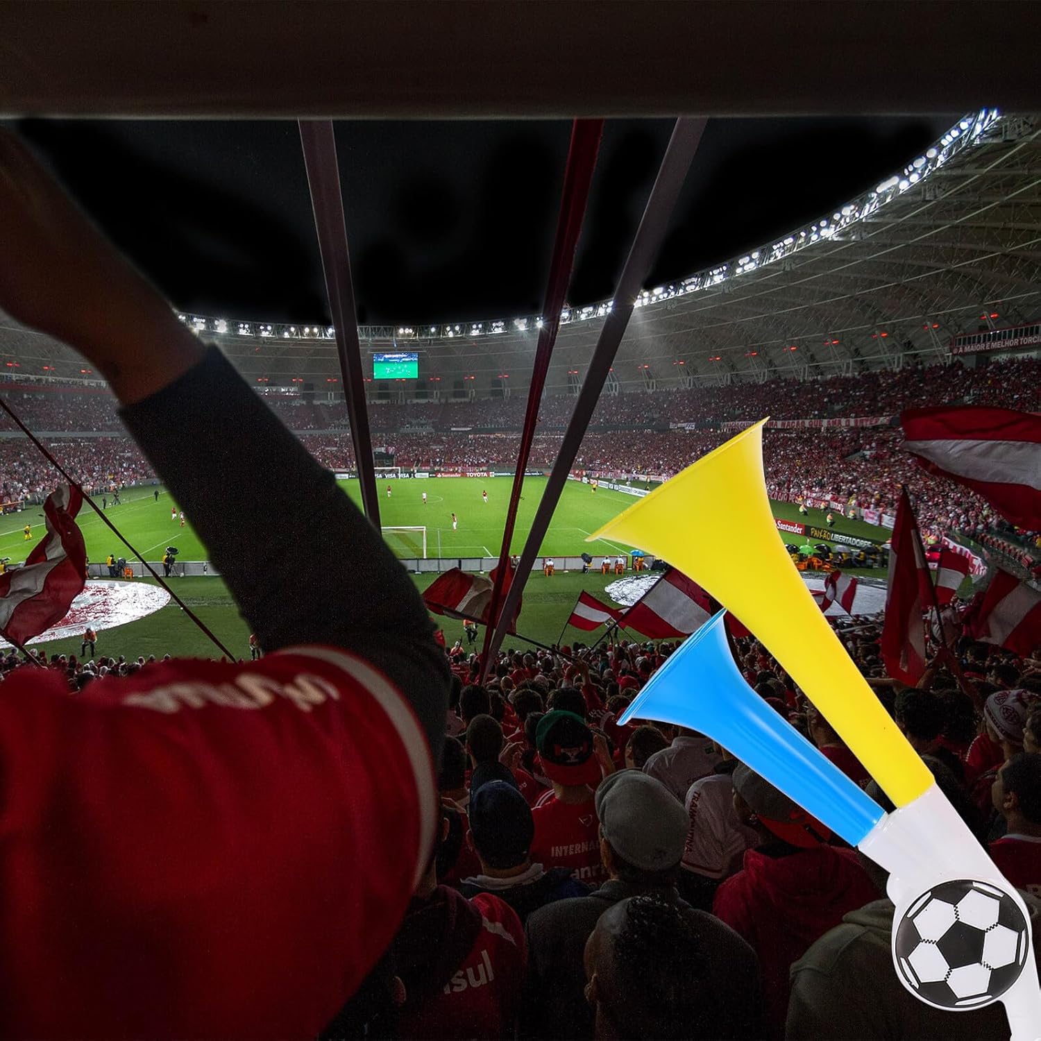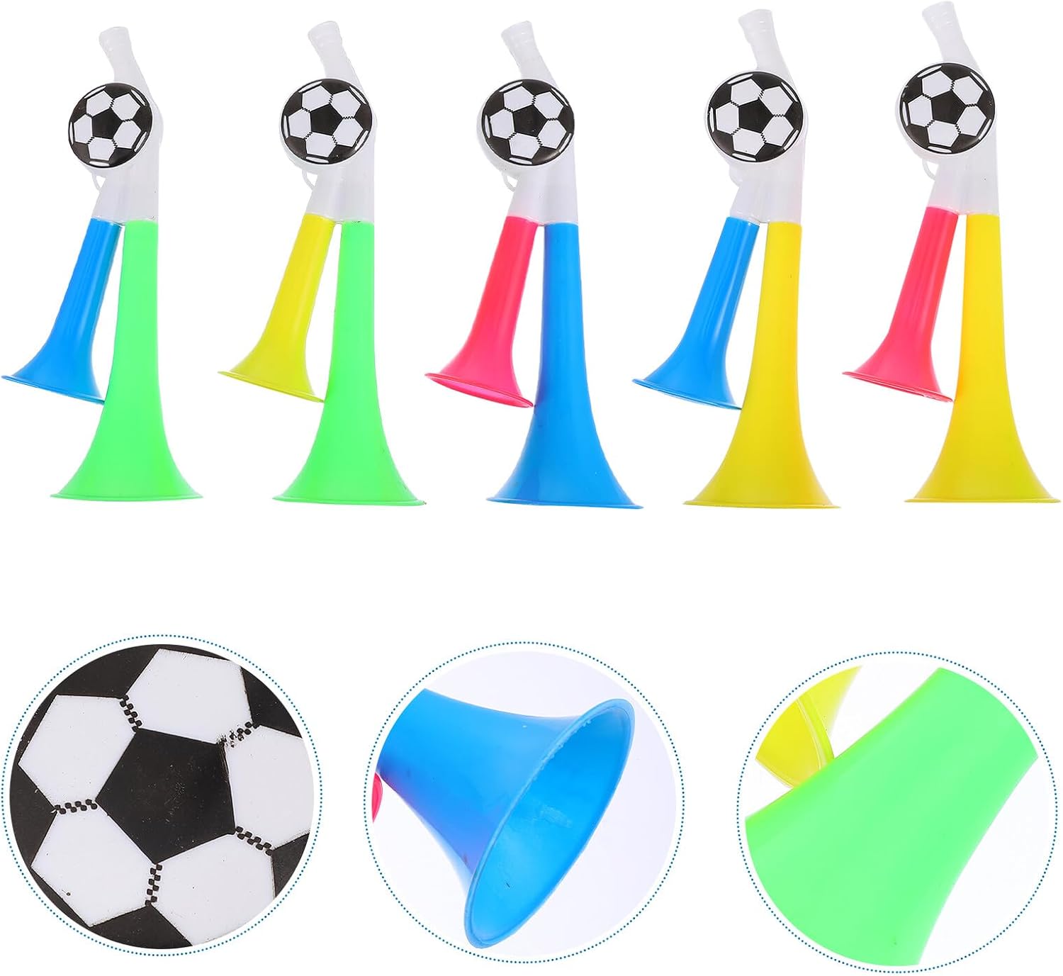 Tromba per tifosi: perfetta per concerti, festival, matrimoni, feste di compleanno, spettacoli dal vivo, tifo per tifosi di calcio, tromba in plastica per stadi: puoi usarla come premi, regali promozionali per tifosi, dirigenti, insegnanti e altro, trombe ad aria portatili Applicazioni: concerti, festival, spettacoli dal vivo, partite di calcio, ecc. Inoltre, il suono di un corno è più potente che suonarne uno Fischio, trombe ad aria durante eventi calcistici, generatore di rumore per la folla Generatore di rumore per eventi sportivi: i colori vivaci attirano l'attenzione della gente e ti fanno distinguere facilmente tra la folla. Ottimi accessori per ravvivare la tua festa. Trombe per partite di calcio Trombe per eventi sportivi: adatte a feste, eventi sportivi, celebrazioni, gare di cheerleader e altro, donano all'intera scena un'atmosfera vivace e festosa, emettono suoni esultanti