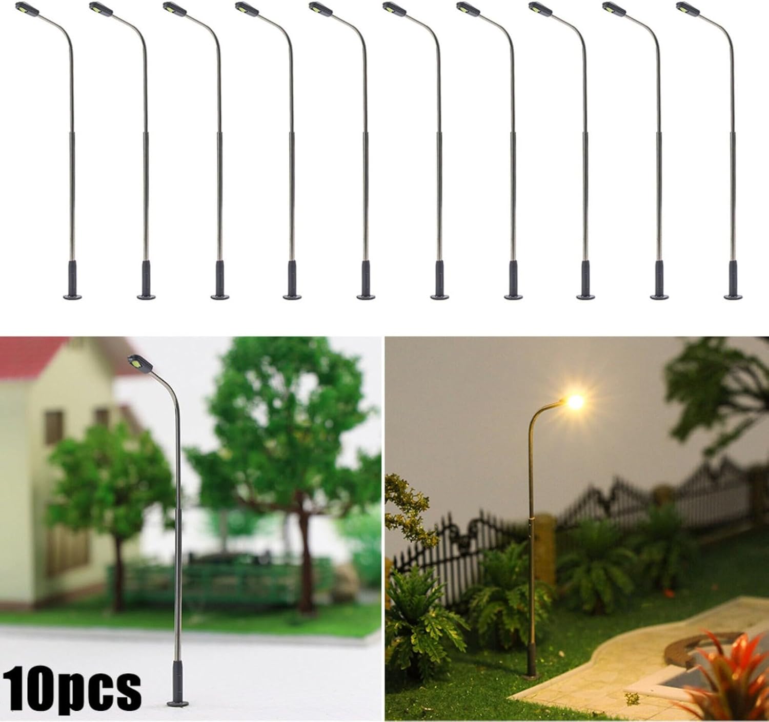 【Lampioni stradali a LED con luce bianca calda】 Questo set contiene 10 lampioni bianchi caldi, perfetti per modellismo ferroviario e sistemi di costruzione. Il design a testa singola aggiunge un tocco di autenticità alla tua scena. 【Progettato per tensione 3 V】 Questi lampioni sono progettati specificamente per tensione 3 V CC o CA. L'uso diretto a tensioni più elevate come 12 V o 16 V può causare danni ai LED. Assicurarsi che a ciascun LED sia applicata la corrente operativa corretta di 20 mA. 【Costruzione in metallo robusta e durevole】 Questi lampioni sono realizzati in metallo e sono progettati per durare. Resistono all'uso continuo e mantengono la stabilità del sistema. 【 e Utilizzo 】 Il set contiene 10 lampade e 10 resistori in serie per applicazioni a 12-16 V. Se si utilizza un trasformatore da 12-16 V, installare sulla linea il resistore incluso. Installa questi lampioni senza sforzo e crea un effetto luminoso realistico. 【Adatto agli appassionati di modellismo dai 14 anni in su】 Questi lampioni sono consigliati agli appassionati di modellismo dai 14 anni in su. Sono una grande aggiunta alla tua collezione e daranno vita alle tue scene di modellismo. La consegna comprende pali della lampada e resistori in serie; gli altri accessori mostrati non sono compresi nella fornitura.