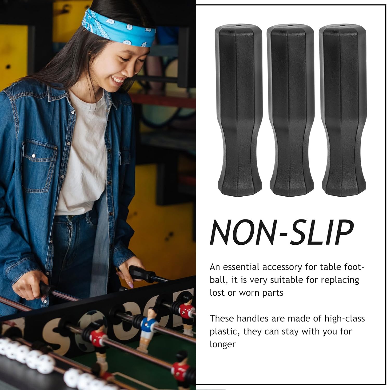 Comoda maniglia per calcio balilla: realizzata in plastica di alta qualità, ti offre un'esperienza di gioco ottimale Maniglia di ricambio per calcio balilla: durevole e resistente all'usura: questa maniglia è la scelta ideale in sostituzione della vecchia maniglia. È leggero, si tiene bene in mano, è facile da usare e ti aiuta a vincere più facilmente nel gioco, soprattutto nelle partite accese. Accessori per il calcio balilla Accessori per il calcio balilla: il montaggio e lo smontaggio sono molto facili e convenienti, fanno risparmiare tempo e sono un sostituto ideale per le maniglie del calcio balilla professionale Maniglia per calcio balilla in plastica: puoi tenerla a casa e supportare la tua partita di calcio balilla sempre e ovunque - un sostituto naturale per una maniglia per calcio balilla Parti di ricambio per calcio balilla: realizzati in plastica di alta qualità, sono facili da usare e hanno maniglie per calcio balilla in plastica