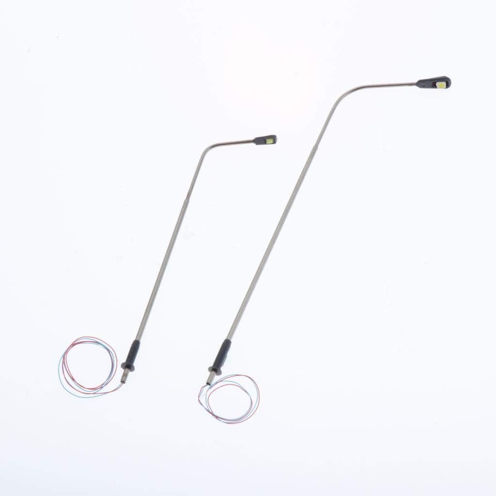 Scala 1:75/1:100 Questi lampioni sono adatti solo per l'uso con tensioni di alimentazione di 3 V. Sono completi di cavi e LED e possono essere illuminati. Colore chiaro: bianco Nuovo di zecca. Perfetto per il layout ferroviario ed edilizio!