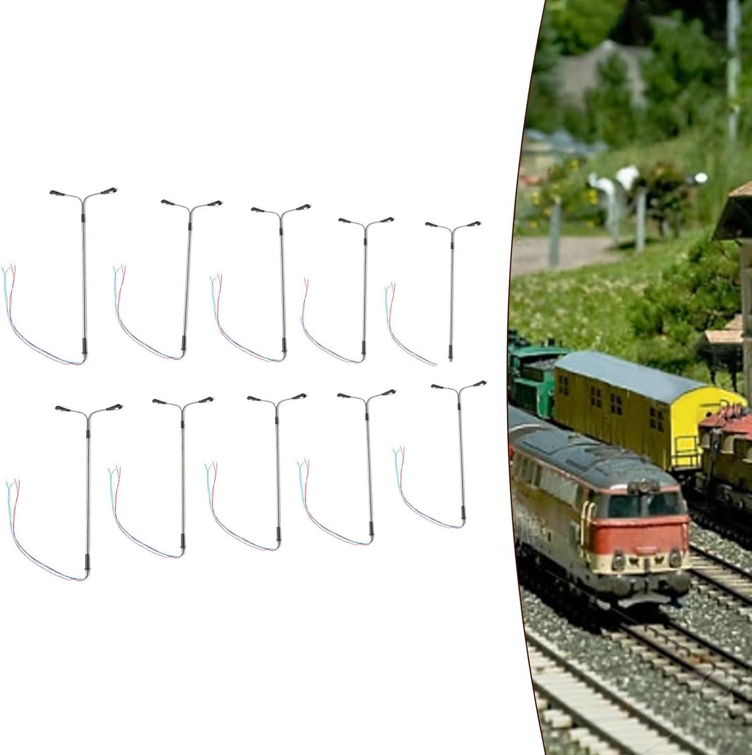 【Lampioni stradali a LED per modellismo ferroviario】 Questo set contiene 10 lampade bianche a due teste appositamente progettate per modellismo ferroviario in scala OO e HO. Con un'altezza di 14 cm, questi lampioni sono perfetti per aumentare il realismo dei tuoi progetti ferroviari ed edilizi. 【LED integrati per un'illuminazione realistica】Ogni lampada di questo set è realizzata con LED che emettono una luce brillante e realistica. Sono completi di cavi e LED che possono essere illuminati per aggiungere un tocco autentico al tuo mondo in miniatura. 【Adatto per alimentazione da 3 V】 Questi lampioni sono adatti per l'uso con un'alimentazione da 3 V. Le specifiche includono la costruzione tubolare e la scala 1:75, che li rendono perfetti per modelli di tavoli di sabbia, decorazioni da giardino e modelli di scenari. 【Applicazione versatile】 Non limitati ai layout ferroviari, questi lampioni a LED possono essere utilizzati anche per decorazioni da giardino, allestimenti di intrattenimento per il tempo libero e come ambiente in vari scenari. Il loro aspetto realistico e la loro funzionalità li rendono la scelta ideale per valorizzare qualsiasi display in miniatura. Pacchetto incluso: questo pacchetto include 10 luci modello che forniscono un'ampia copertura per la tua ferrovia o altri progetti. Ogni lampada è realizzata con cura per soddisfare gli standard più elevati e offrire prestazioni eccezionali.