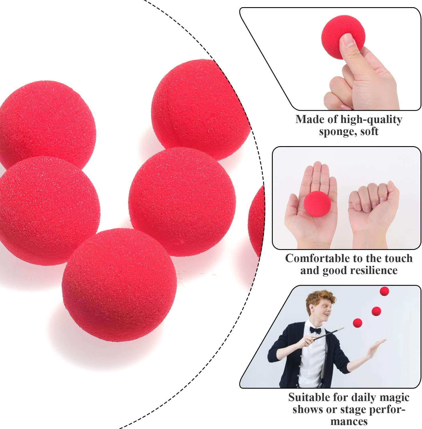I prodotti includono: un set con un totale di 10 palline magiche di spugna. Un set di palline di spugna magica da 4,5 cm può soddisfare le diverse esigenze. Ideale per il palcoscenico e l'uso magico quotidiano. Fantastici oggetti di scena classici: come classici oggetti di scena per spettacoli di magia, puoi muoverti o moltiplicarti quando la palla scompare o appare nelle mani del pubblico per stupire il tuo pubblico. Queste palline rosse sono le preferite dal pubblico e adatte a tutte le età. Facile da usare: 10 palline di spugna magiche rosse con un diametro di 4,5 cm, questo è un classico oggetto di scena magico. Imparerai facilmente come utilizzare queste piccole palline di spugna ed eseguire trucchi magici per la famiglia e gli amici. Costruzione in spugna di alta qualità: queste palline magiche rosse sono realizzate con materiali in spugna di alta qualità, morbidi, leggeri e confortevoli al tatto. Comprimibile, consente di risparmiare molto spazio, facile da trasportare, non facile da danneggiare e può essere utilizzato a lungo. Ideale per principianti e professionisti: queste palline di spugna sono oggetti di scena magici perfetti per gli appassionati di magia o i principianti che vogliono imparare come usare queste palline ed eseguire trucchi per amici e familiari. Sono facili da imparare e perfetti per fare magie con amici e familiari.