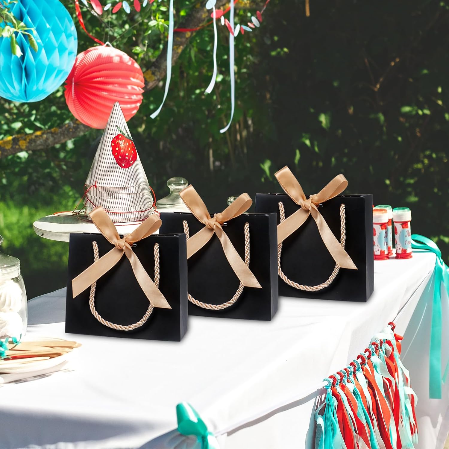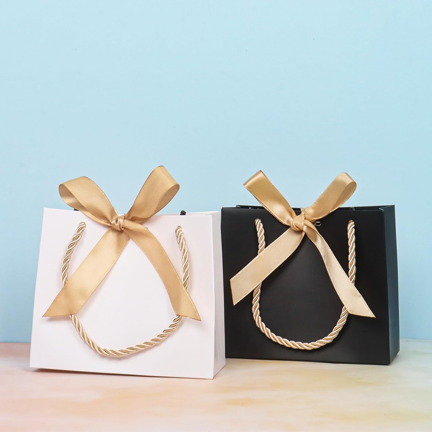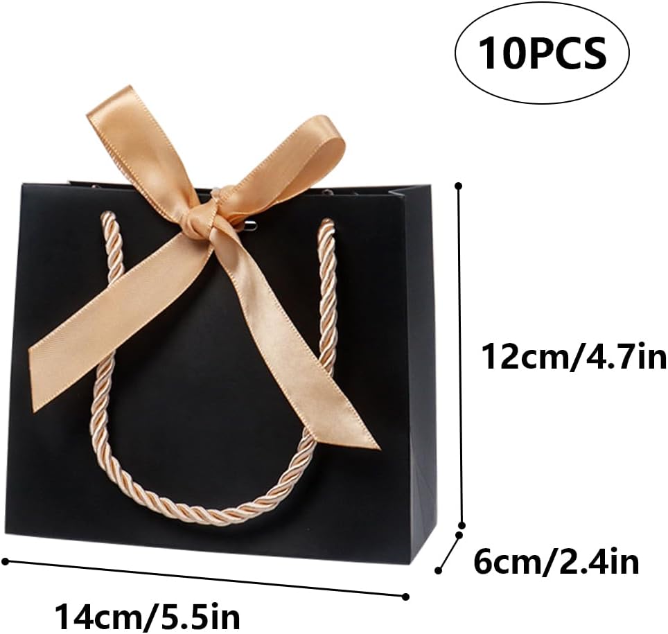 Mini formato per piccoli regali: questi mini sacchetti regalo che misurano 14(L)×6(L)×12(A) cm/5,51×2,36×4,72 pollici sono ideali per piccoli regali, bomboniere, gioielli e altri piccoli oggetti. MATERIALE DI ALTA QUALITÀ: Realizzati con carta spessa di alta qualità, questi sacchetti regalo sono progettati per contenere piccoli oggetti in modo sicuro senza strapparsi o rompersi. Design elegante con fiocco: ogni borsa è decorata con un bellissimo fiocco che aggiunge un tocco di eleganza e fa risaltare i tuoi regali in ogni evento. COMODE MANIGLIE: Grazie alle robuste e comode maniglie, queste mini borse da festa sono facili da trasportare e sono adatte ad ogni occasione, dai compleanni ai matrimoni. MULTIUSO - Che si tratti di matrimoni, compleanni, vacanze o anniversari, questi eleganti mini sacchetti regalo sono perfetti per qualsiasi evento. Il loro design classico si adatta a una varietà di temi e occasioni.