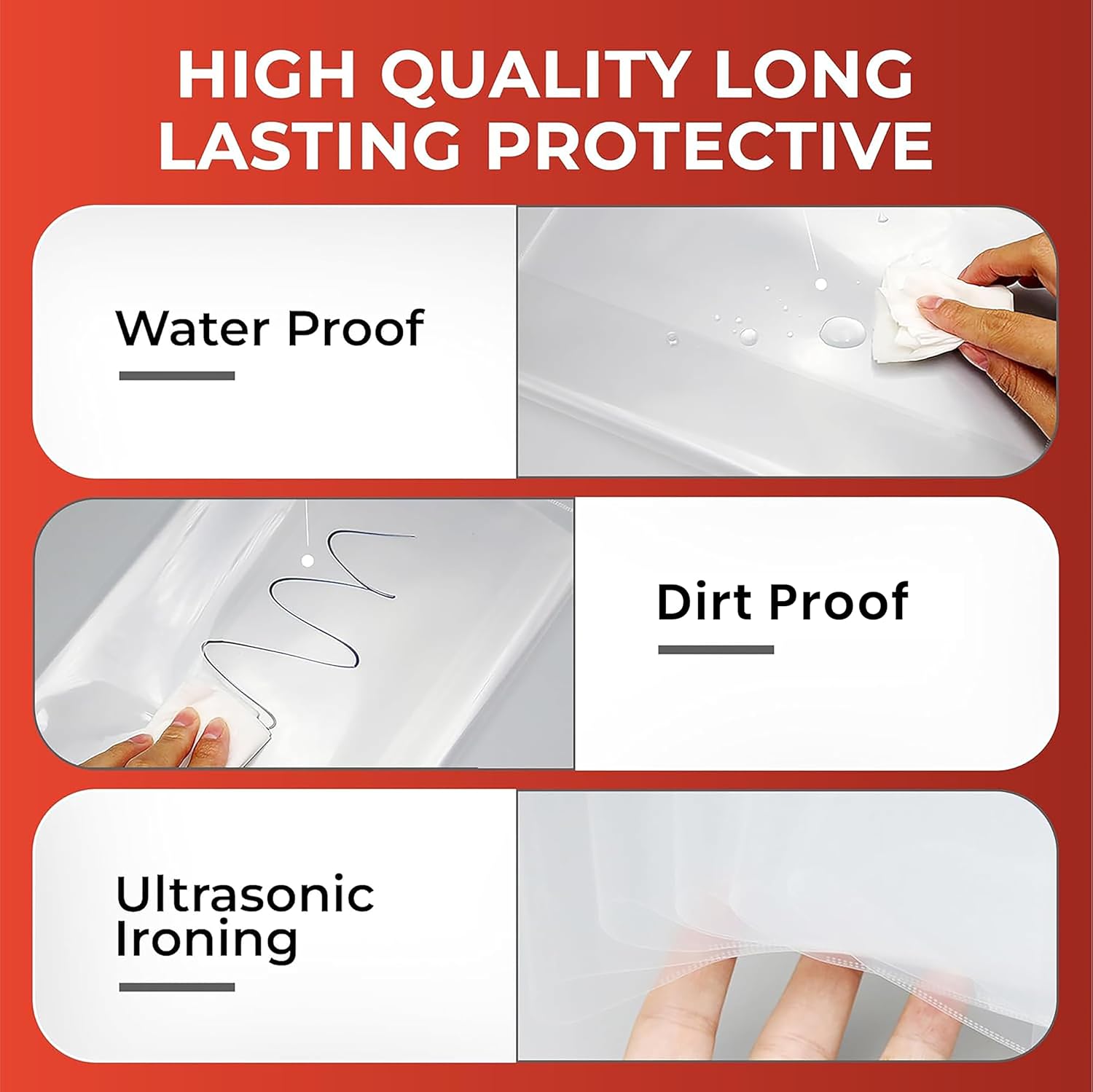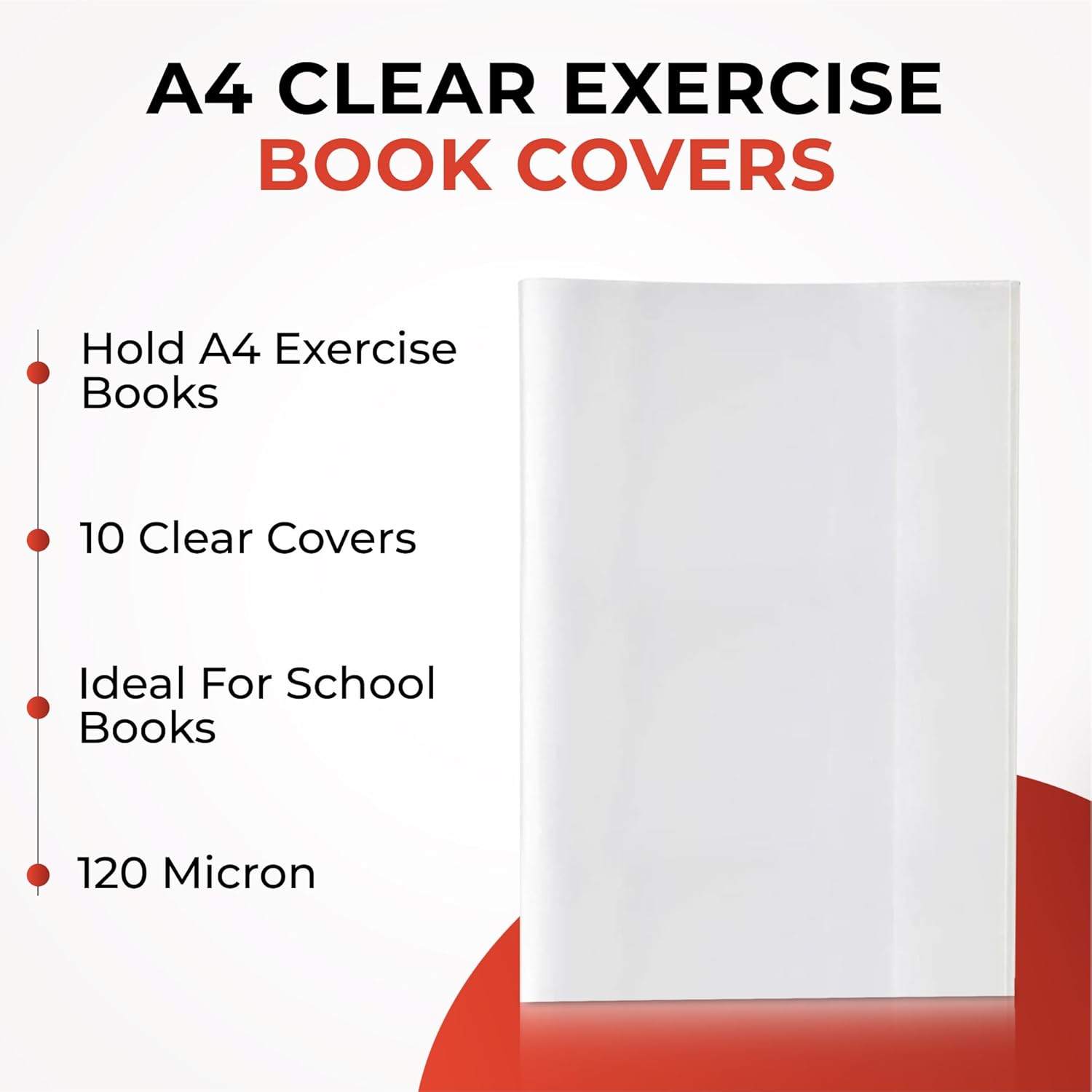Confezione da 10 protezioni trasparenti per quaderni A4 di Janrax. Adatte per quaderni A4. Basta far scorrere la copertina del libro nella giacca bi-fold per ottenere una copertura protettiva ordinata, resistente agli agenti atmosferici e facile da pulire. trasparente 120 micron con aletta sovrapposta da 50 mm. Non adesivo e riutilizzabile. Puoi scriverci sopra con un pennarello indelebile o personalizzarlo con adesivi, ecc.