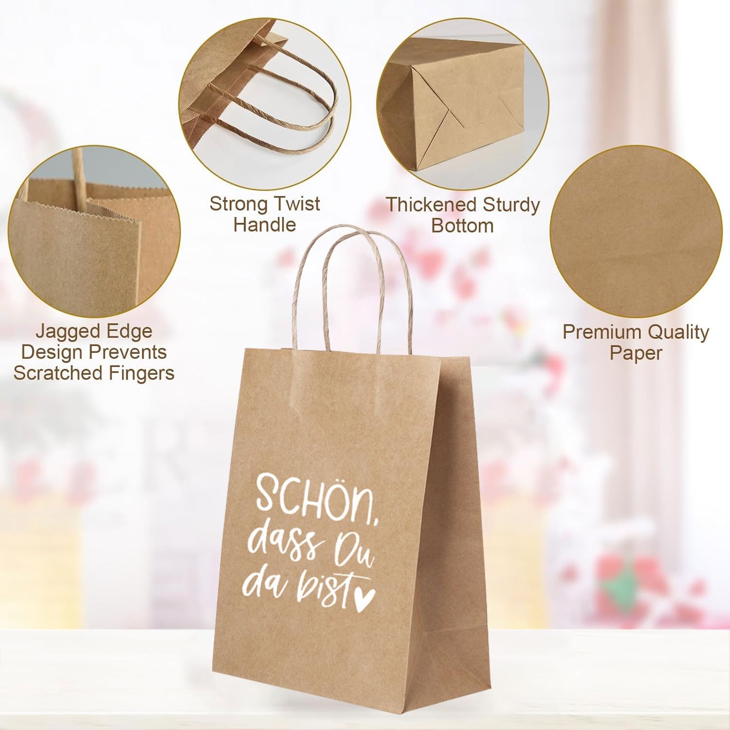 【Sacchetti regalo】Sacchetti regalo in carta da 10 pezzi, riempi questi sacchetti regalo per feste con caramelle, giocattoli e piccoli regali per creare la borsa regalo perfetta per i matrimoni. 【Riutilizzabile】 Realizzato in carta kraft, riutilizzabile e facile da trasportare. La piacevole consistenza dei manici di carta ti consente di trasportare e trasportare facilmente i tuoi regali. Molteplici usi: le borse della spesa in carta Kraft misurano 15 x 8 x 21 cm, borse per la vendita al dettaglio, borse per merci. Sono fantastici sacchetti per bomboniere per feste, matrimoni, compleanni, anniversari, festival, lauree. 【Proteggi i regali】 I nostri piccoli sacchetti di carta proteggono in modo affidabile i regali da danni, graffi e contaminazione. Ciò significa che i tuoi regali arriveranno al destinatario nelle migliori condizioni possibili. 【Concetto Jiahuade】 Jiahuade aderisce al principio del servizio clienti, trasmettiamo il massimo calore e benedizioni ai nostri prodotti e speriamo che coloro che ricevono i nostri prodotti possano sperimentare amore e cura.