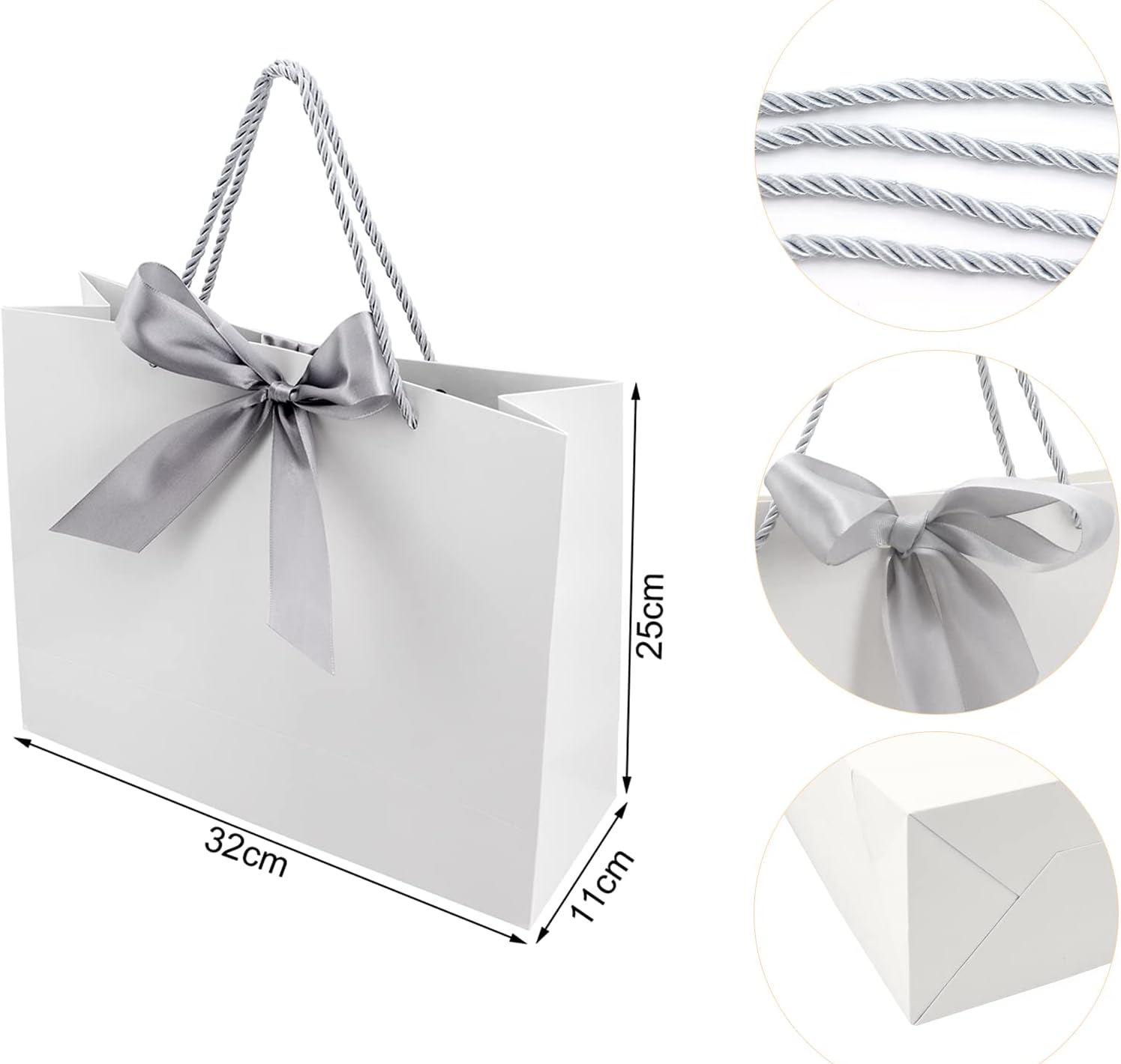 【Alta qualità】 I nostri sacchetti regalo sono realizzati in cartone di alta qualità, abbastanza spesso e non facile da rompere; Il manico della borsa è realizzato in corda a tre fili di alta qualità, è più resistente, non facile da rompere e può aiutarti a trasportare facilmente oggetti pesanti per soddisfare le tue esigenze quotidiane. cosmetici, orologi, occhiali, cravatte, camicie, libri, souvenir ecc. Ampiamente usato: questo sacchetto regalo di compleanno con fiocco è bellissimo ed è adatto per matrimoni, compleanni, Natale, Ringraziamento, cene, San Valentino, inaugurazioni di case, baby shower e altre occasioni, nonché boutique, negozi e negozi di snack, negozi di cosmetici, negozi di abbigliamento, ecc. Regalo fai da te: la superficie vuota è adatta per gli appassionati del fai da te. Puoi progettare questi sacchetti regalo di nozze scrivendo, disegnando, adesivi per renderli speciali, entusiasmare il destinatario per il regalo imminente e lasciare un'impressione duratura